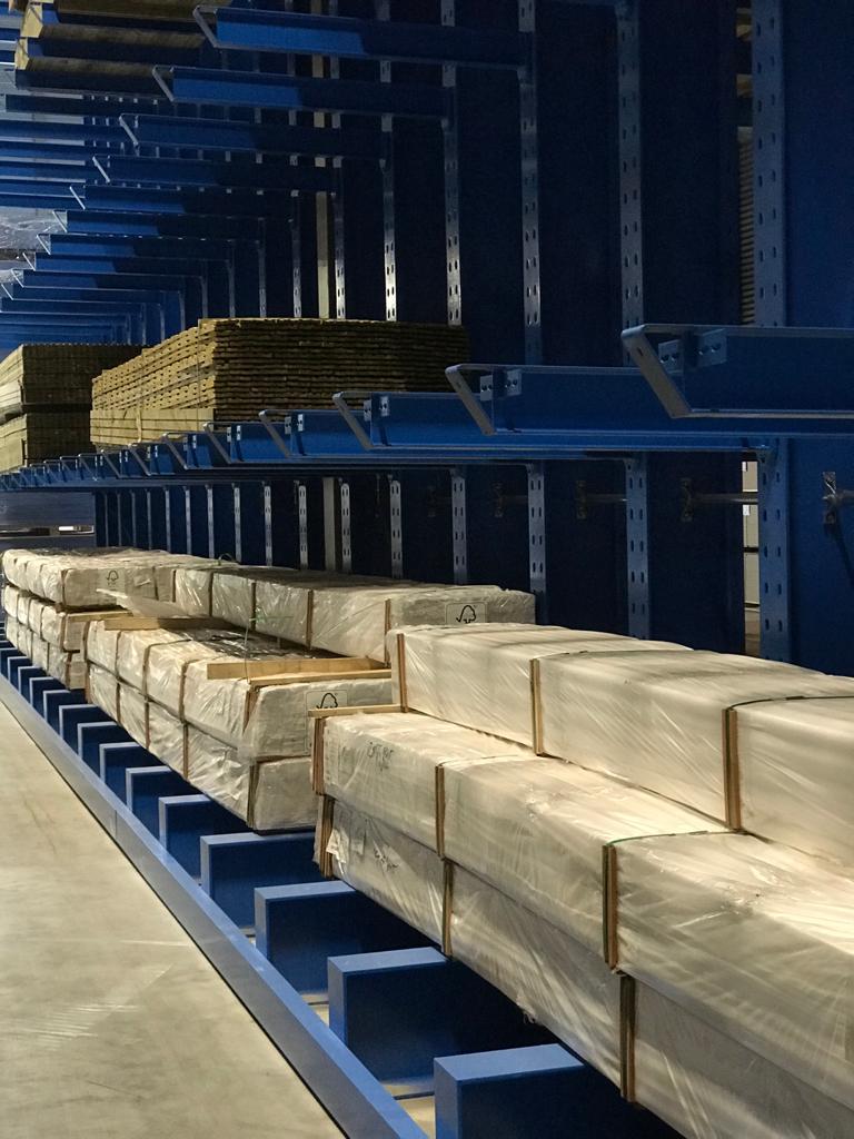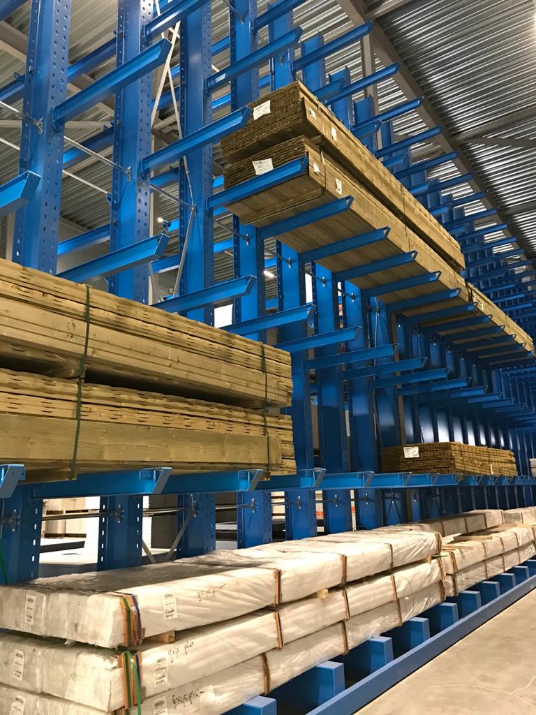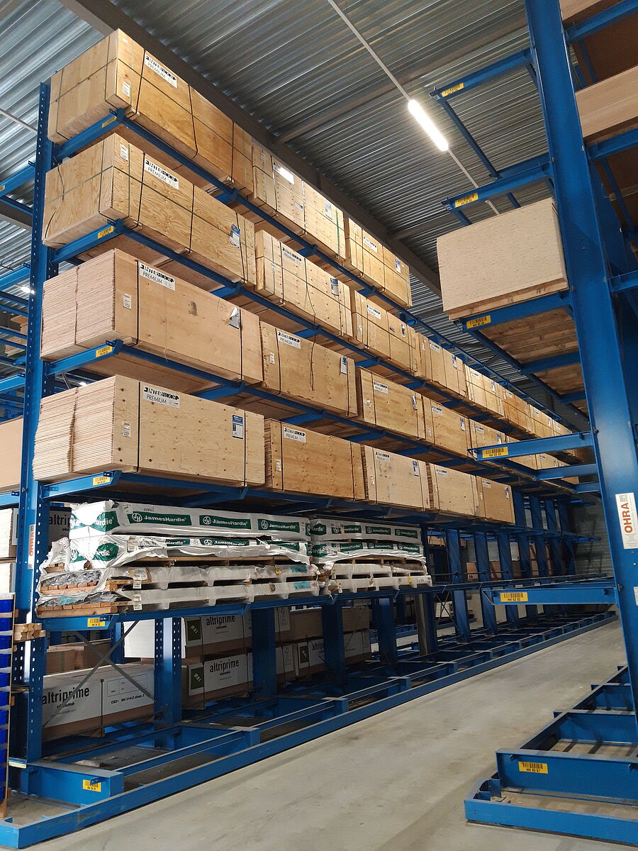 4PLUS Bouwmaterialen B.V., la organización de compras a la que pertenecen 59 comerciantes de constructores independientes, ha duplicado con creces la capacidad de su almacén central en Born, Países Bajos, utilizando estanterías cantiléver OHRA. Anteriormente los listones de madera, vigas o paneles de yeso se almacenaban apilados en el suelo del almacén, las estanterías de 8,47 metros de altura permiten ahora aprovechar al máximo la altura del almacén de unos 10 metros. Esto no solo proporciona un mayor espacio de almacenamiento, sino que también simplifica considerablemente toda la manipulación de los materiales de construcción, aumenta la seguridad del personal de los almacenes y reduce al mínimo los daños a las mercancías.