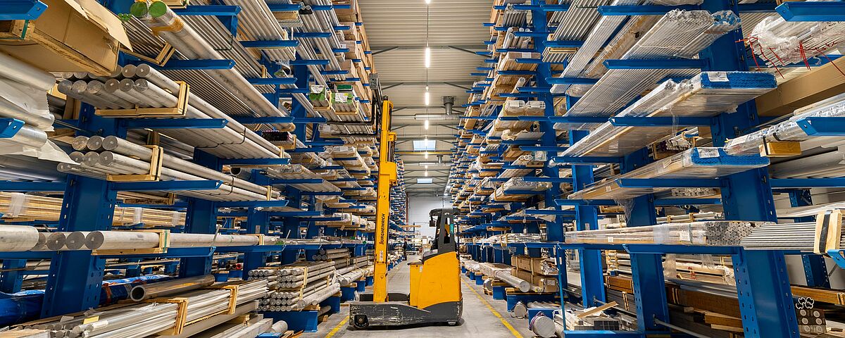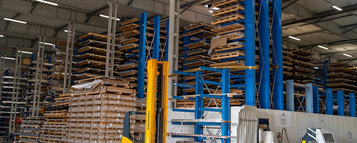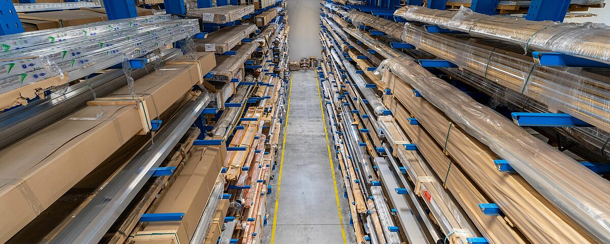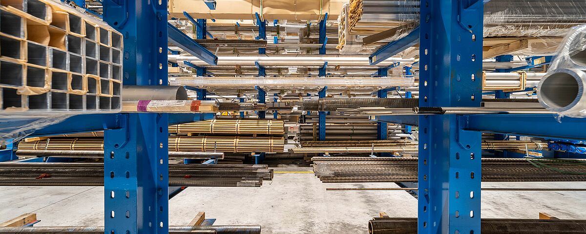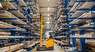 Para lograr una mayor capacidad de almacenamiento y una logística más eficaz, Adamet-Niemet equipó su almacén de materias primas con estanterías cantiléver de OHRA. El almacenamiento anterior en el suelo y en varias estanterías más pequeñas ya no ofrecía capacidad suficiente para el creciente negocio del mayorista del metal. Además, la frecuente necesidad de traslado provocaba repetidamente daños en las chapas, barras y perfiles almacenados. Con varios lineales de estanterías cantiléver de hasta 8.570 milímetros de altura, la empresa pudo aumentar su capacidad de almacenamiento, así como acelerar los procesos de almacenamiento y recuperación y reducir los daños a las delicadas mercancías almacenadas.