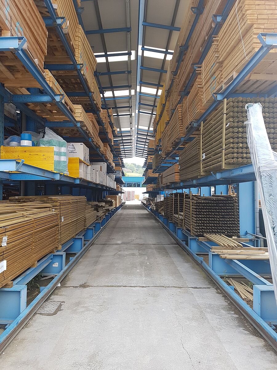 Como novedad en este año 2017, se han instalado en una zona anexa a la nave principal, unas nuevas estanterías cantiléver de iguales características a las del interior, para darle apoyo de almacenamiento. Las nuevas estanterías de cuatro niveles de altura, se instalaron bajo techo y permiten hoy en día, en comparación con el almacenamiento fijo, simplificar el control de stocks, al mismo tiempo que se facilita el acceso a la mercancía, reduciendo así los tiempos de recuperación de la mercancía.