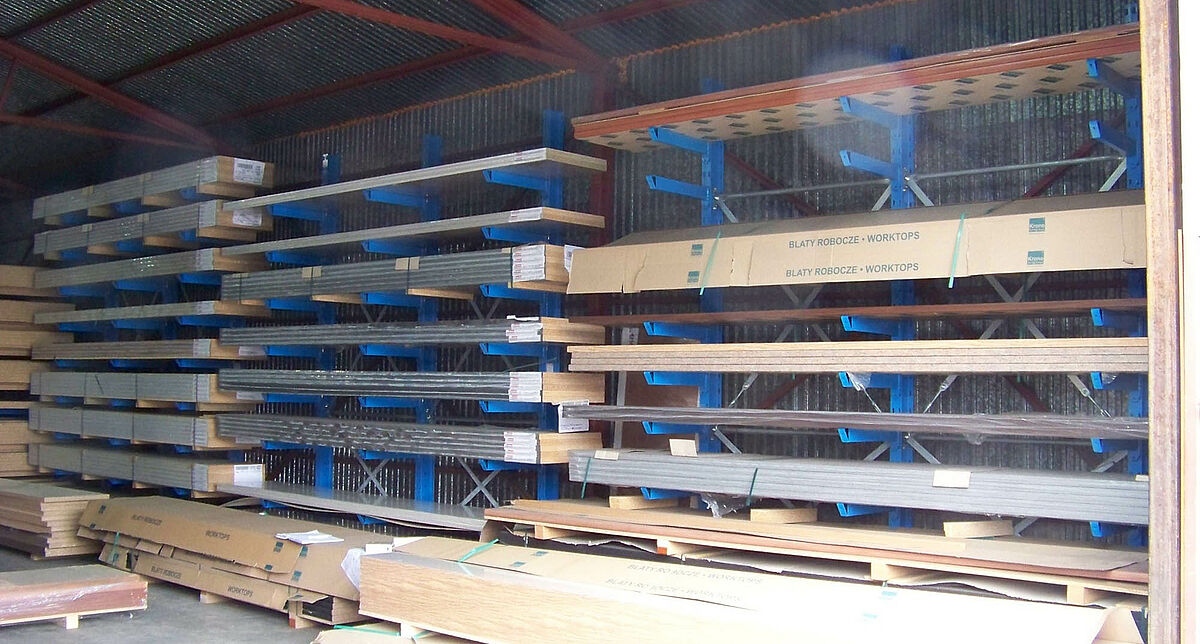 Estanterías cantiléver y de paletización para tableros de virutas y encimeras