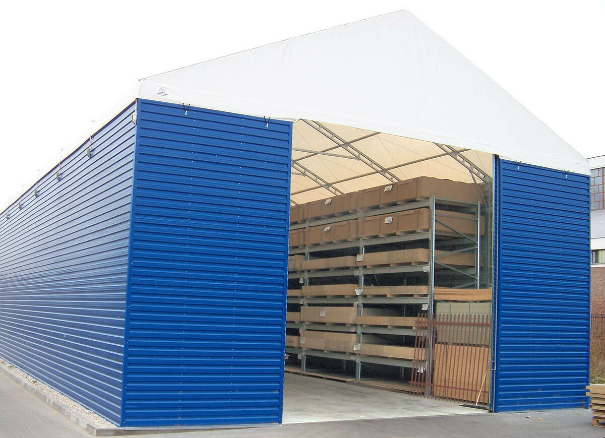 Ya hace seis años que Damar realizó su primera inversión en estanterías OHRA. Convencida de su calidad, ahora esta empresa ha vuelto a elegir al especialista en estanterías cantiléver y de paletización de Kerpen para equipar su nuevo almacén con estanterías para palés. En él se almacenan tableros de virutas de 2070 x 2800 milímetros en paquetes que llegan a pesar hasta 1.800 kilos. La particularidad reside en que el almacén se instaló en una nave desmontable. Esto permitió demostrar la gran flexibilidad de las soluciones de estanterías de OHRA ya que, para aprovechar el espacio de la mejor forma posible, la distancia de las columnas de las estanterías se ajustó exactamente al armazón de la nave desmontable. Para ello, OHRA modificó en 2.950 milímetros la longitud de los travesaños longitudinales, de modo que las columnas de las estanterías para tableros quedan exactamente delante de los puntales que soportan la cubierta de la nave, lo que permite aprovechar al máximo el espacio disponible.