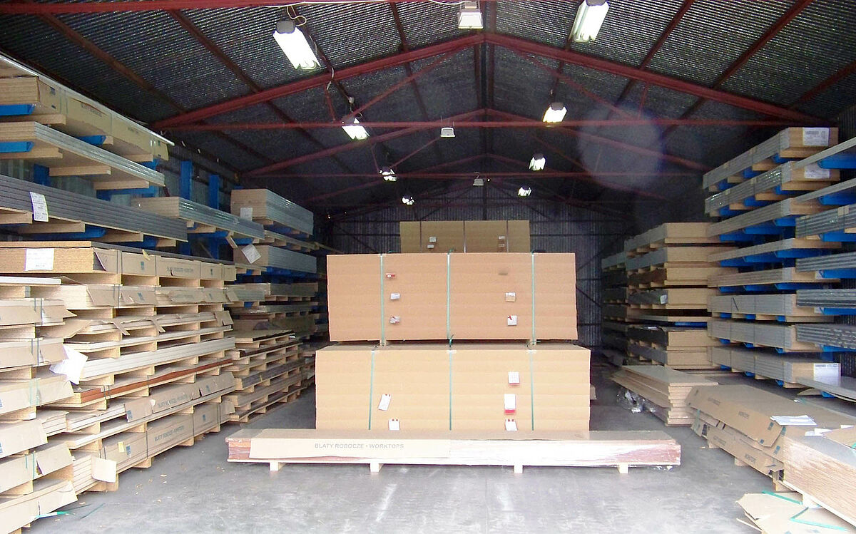 Para aprovechar de forma óptima la superficie de almacenamiento, la empresa polaca Damar ha instalado en sus almacenes estanterías cantiléver y para palés de OHRA. Estos sistemas de estanterías no solo permiten almacenar de forma ordenada y clara los tableros de virutas, los tableros OSB y las encimeras para cocinas, sino que también se pueden configurar con gran flexibilidad. De este modo, se pueden ajustar a los cambios que se produzcan en el almacén y adaptarlos individualmente a las condiciones del mismo.