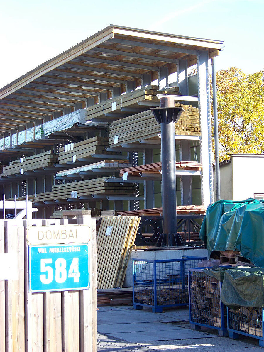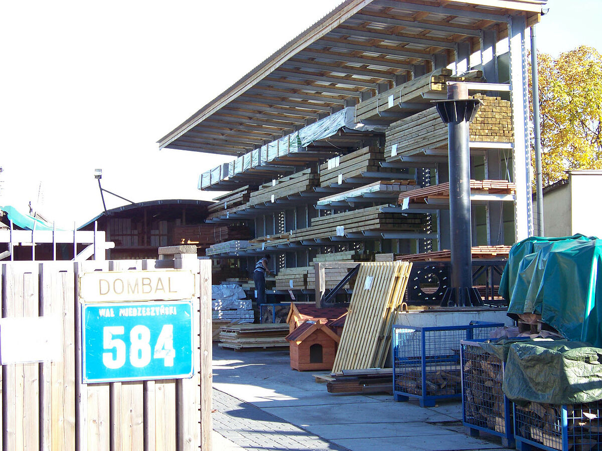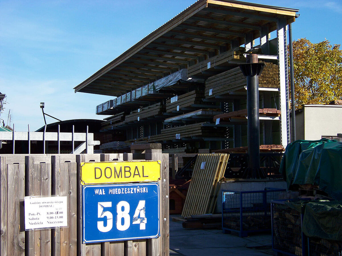 Una cartera de productos cada vez más grande y la cada vez mayor frecuencia de acceso a la mercancía almacenada fueron los motivos que llevaron a la empresa polaca Dombal, especialista en la venta de madera, a modernizar el sistema de almacenamiento de sus maderas para la construcción. Para ello se utilizaron estanterías cantiléver de OHRA, las cuales no solo protegen la mercancía de las inclemencias meteorológicas gracias al techo integrado, sino que con su estable diseño también permiten almacenar los pesados paquetes de madera de forma segura tanto para los clientes como para los empleados.