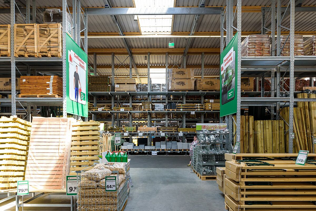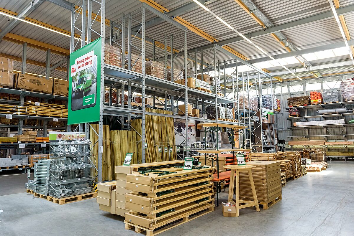 En la amplia superficie de venta del local abierto a finales de 2018, se puede ofrecer un completo surtido de Hagebau con centro de jardinería y comercio de materiales de construcción. Solo la nave autoportante tiene una superficie de aproximadamente 2.000 metros cuadrados.