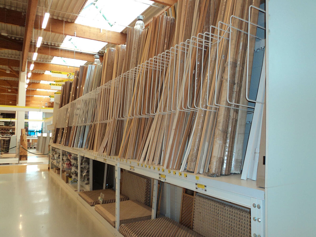 Originalmente la empresa Possling almacenaba sus mercancías, además de madera y materiales para madera su cartera de productos también incluye baldosas, piedras, mercancía en sacos y otros materiales de construcción, en naves para madera y almacenes en bloque. Pero el mal aprovechamiento del espacio y el gran trabajo manual de este sistema de almacenamiento requerían una solución más moderna. Por ello, la empresa Possling equipó su almacén con diferentes estanterías de la empresa OHRA Regalanlagen GMBH. Los especialistas en estanterías de Kerpen convencieron por su extensa cartera de productos de sistemas de estanterías: aparte de las estanterías cantiléver y para palés, también en modelo para carga pesada, Possling necesitaba estanterías especiales para almacenar puertas y marcos, bien como para el almacenamiento vertical de placas.