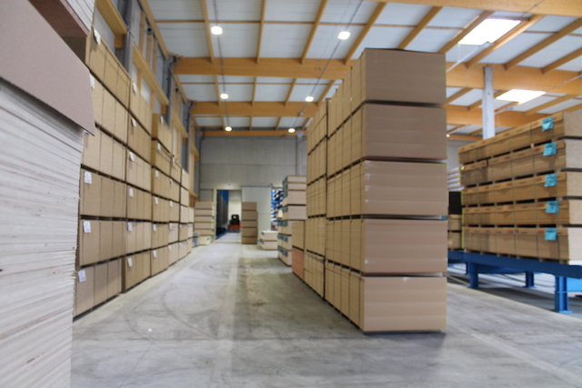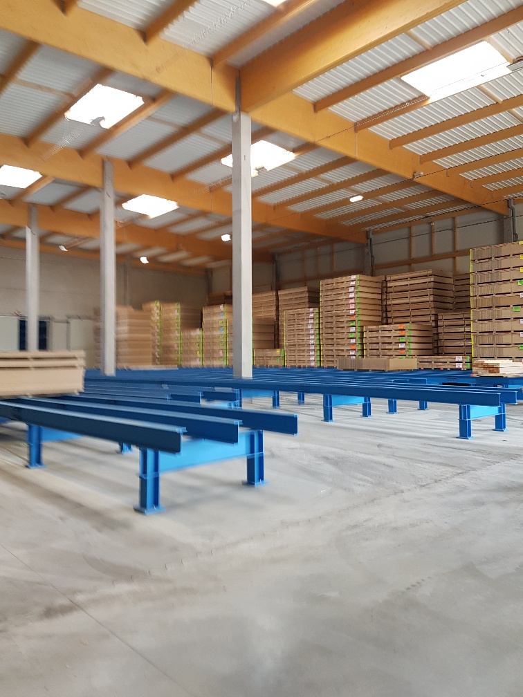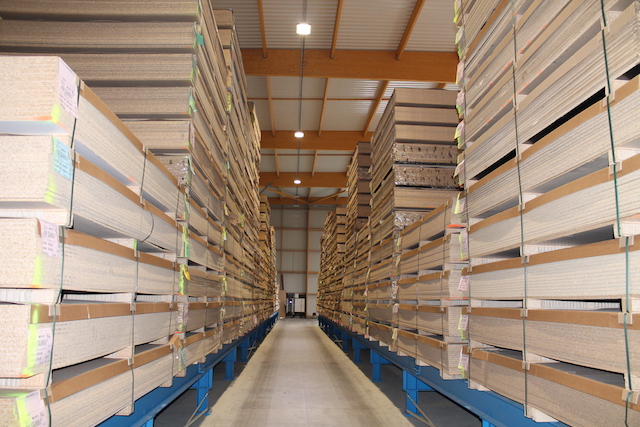 Para acelerar los procesos de entrada de mercancía, OHRA ha suministrado consolas de 90 centímetros adaptadas a las necesidades propias de Hue-Socoda. Los paquetes de placas de madera suministrados están protegidos de tal manera que puedan ser transportados rápida y fácilmente desde las carretillas elevadoras al área de estanterías.