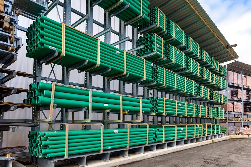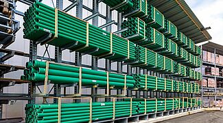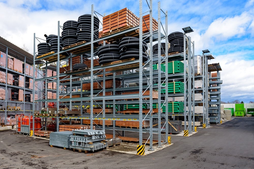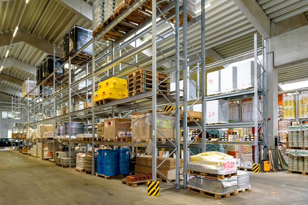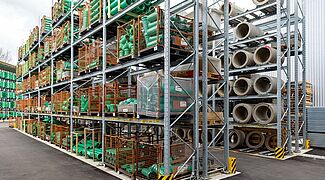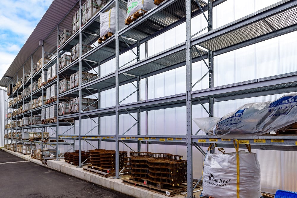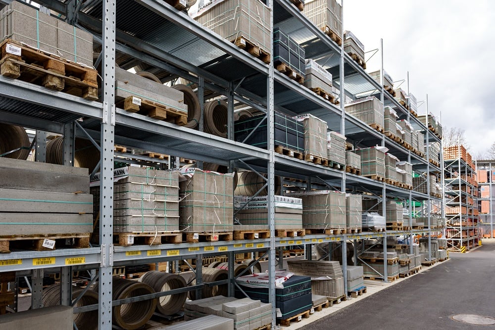 Para el almacenamiento de esta variedad de materiales, Kraft equipó al nuevo almacén externo con estanterías de paletas y cantiléver de OHRA. Ya han convencido a los comerciantes de materiales de construcción de otras ramas por su gran calidad. Porque OHRA sólo utiliza perfiles de acero macizo para los elementos de carga de sus estantes. Esta es la base de la gran capacidad de carga y el diseño fino de los estantes. Las estanterías de paletización permiten cargas de hasta 4.500 kilogramos, las  de las estanterías cantiléver soportan hasta 5.000 kilogramos y cada brazo individual soporta hasta 1.000 kilogramos.