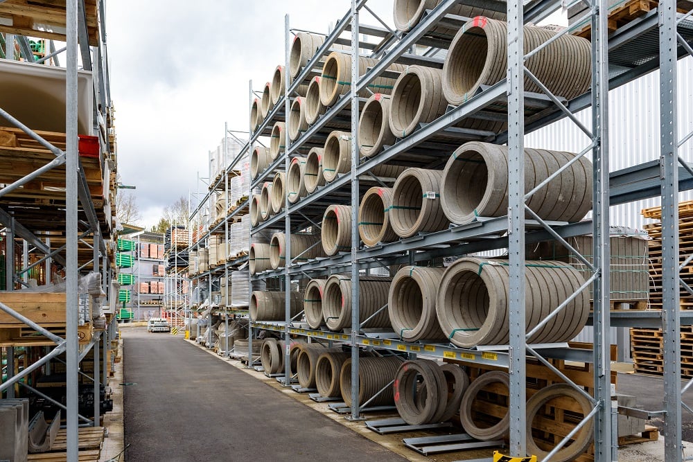 Kraft Baustoffe, según sus propias declaraciones, el mayor comerciante de materiales de construcción de la zona de Múnich a día de hoy, ha construido un almacén al aire libre para su nueva sucursal de Höhenkirchen-Siegertsbrunn con estanterías de paletización y cantiléver de OHRA. Las estanterías no solo tienen tejado, sino que también, dado que se tuvieron que aplicar estrictas normas de aislamiento acústico, también llevan un revestimiento en la pared trasera que sirve como elemento de protección contra el ruido.