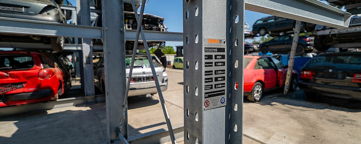 La empresa de reciclaje de automóviles Legalny Autozłom ya no almacena sin más los vehículos al final de su vida útil apilados en el suelo, sino en estanterías cantiléver resistentes de OHRA. Esto significa que la empresa puede almacenar ahora el doble de vehículos en el mismo espacio. Gracias a la gran capacidad de carga de las estanterías fabricadas con perfiles de acero laminado en caliente, los vehículos, que pueden pesar más de 2 toneladas cada uno, se almacenan ahora en tres niveles. Además, el sistema de almacenamiento permite ahora el acceso directo a determinados vehículos y consigue un mayor orden en la zona de almacenamiento en general.