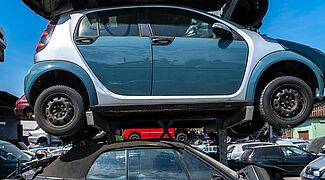 Tres vehículos fuera de uso uno encima del otro... ¡pero de forma segura!