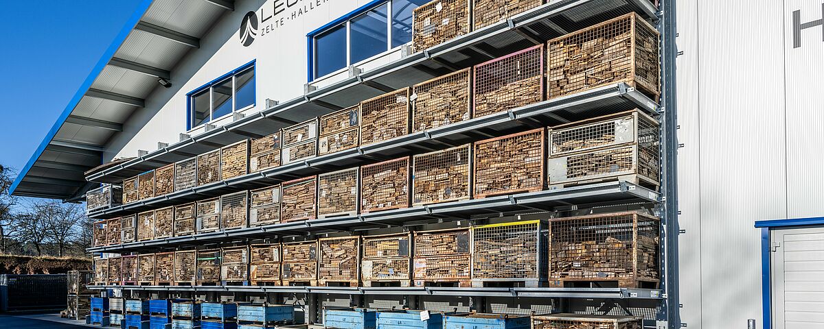 Las carpas también necesitan un lugar seco donde guardarse hasta su próximo uso. Por ello, la empresa LEUBE Zelte und Hallen, con sede en Mudau (Baden-Wurtemberg), en el corazón del Odenwald, Alemania, ha construido una nave cerrada y con aislamiento como almacén de material. Hasta ahora, el material se almacenaba en un almacén de bloques utilizando un sistema caótico hasta que este material se alquilaba o vendía. La nueva nave, en cambio, ofrece un mejor aprovechamiento del espacio de almacenamiento gracias a las estanterías cantiléver de OHRA. Además, los pedidos pueden prepararse mucho más rápido gracias al sistema de almacenamiento ordenado con ubicación determinada.