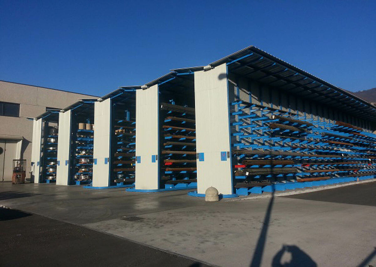 En el local de Calolziocorte la empresa Rosa Catene produce cadenas para aplicaciones en la agricultura, industria y el comercio. El crecimiento constante de la empresa exigió la construcción de un nuevo almacén de materias primas para rollos de chapa en palés y barras de acero enfardeladas. La empresa OHRA recibió el encargo de construir el almacén: la especialista en sistemas de estanterías cantiléver con sede en Kerpen, Alemania, convenció a la Rosa Catene con un concepto mediante el cual las columnas de las estanterías cantiléver sirven simultáneamente como construcción de soporte para la nave. En el concepto propuesto los elementos del tejado de las seis filas de estanterías se superponen entre sí. De esa forma resulta un almacén modular completamente cubierto que se puede ampliar sin problemas en el futuro. Además, esta construcción ofrece claras ventajas de costes y se instala más rápido que una nave común.