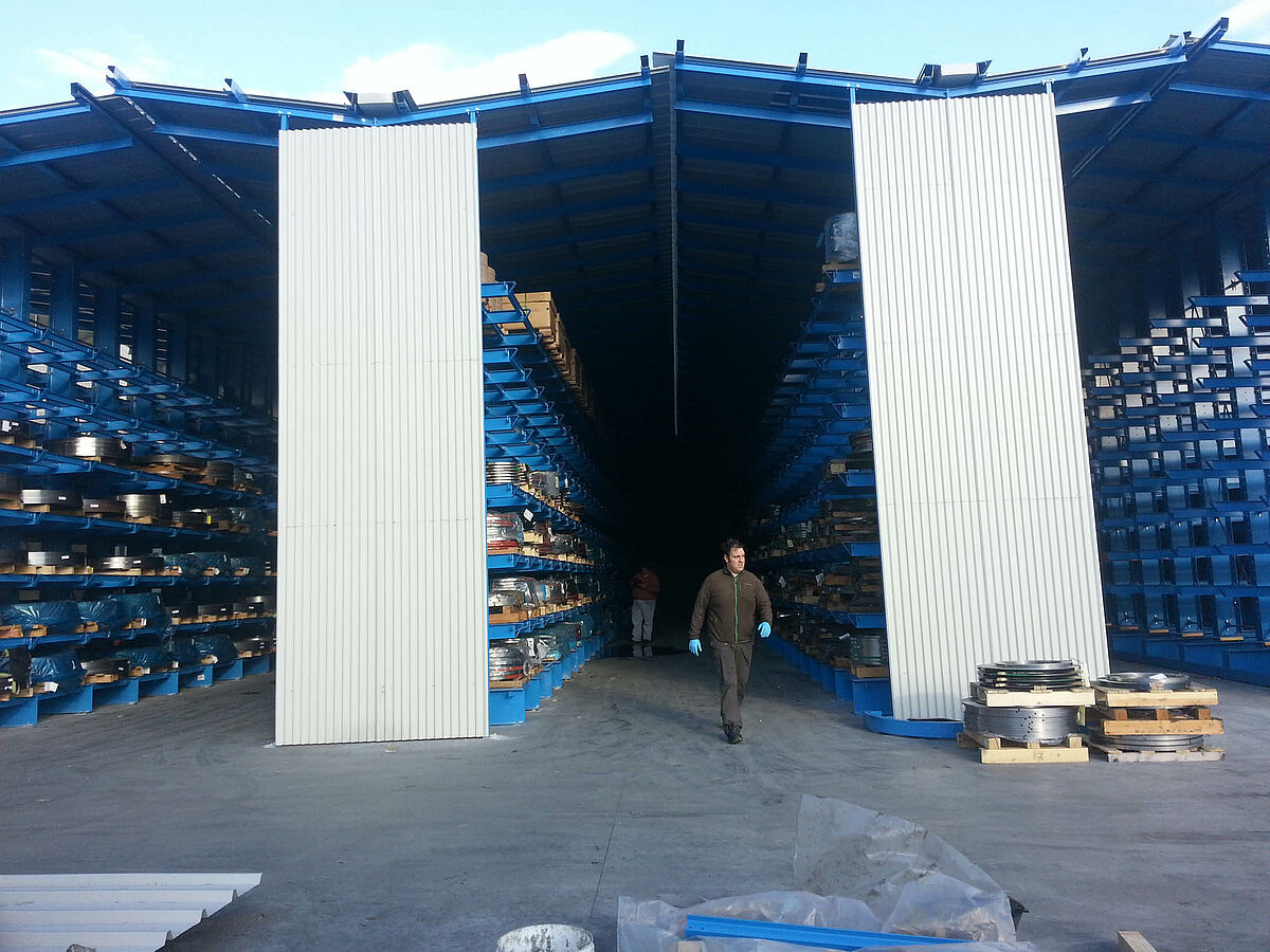 Todo el almacén tiene alrededor de 900 metros cuadrados y está compuesto de cinco filas de 30 metros de estanterías cantiléver bilaterales y una fila de estanterías unilaterales. Los sistemas de estanterías de la empresa OHRA se fabrican con perfiles estables de acero laminado en caliente que soportan grandes alturas y cargas. La construcción robusta además reduce los costes y la pérdida de tiempo por reparaciones y mantenimiento, tales como los daños por choques y similares originados en las construcciones de estanterías comunes fabricadas con perfiles de chapa.
