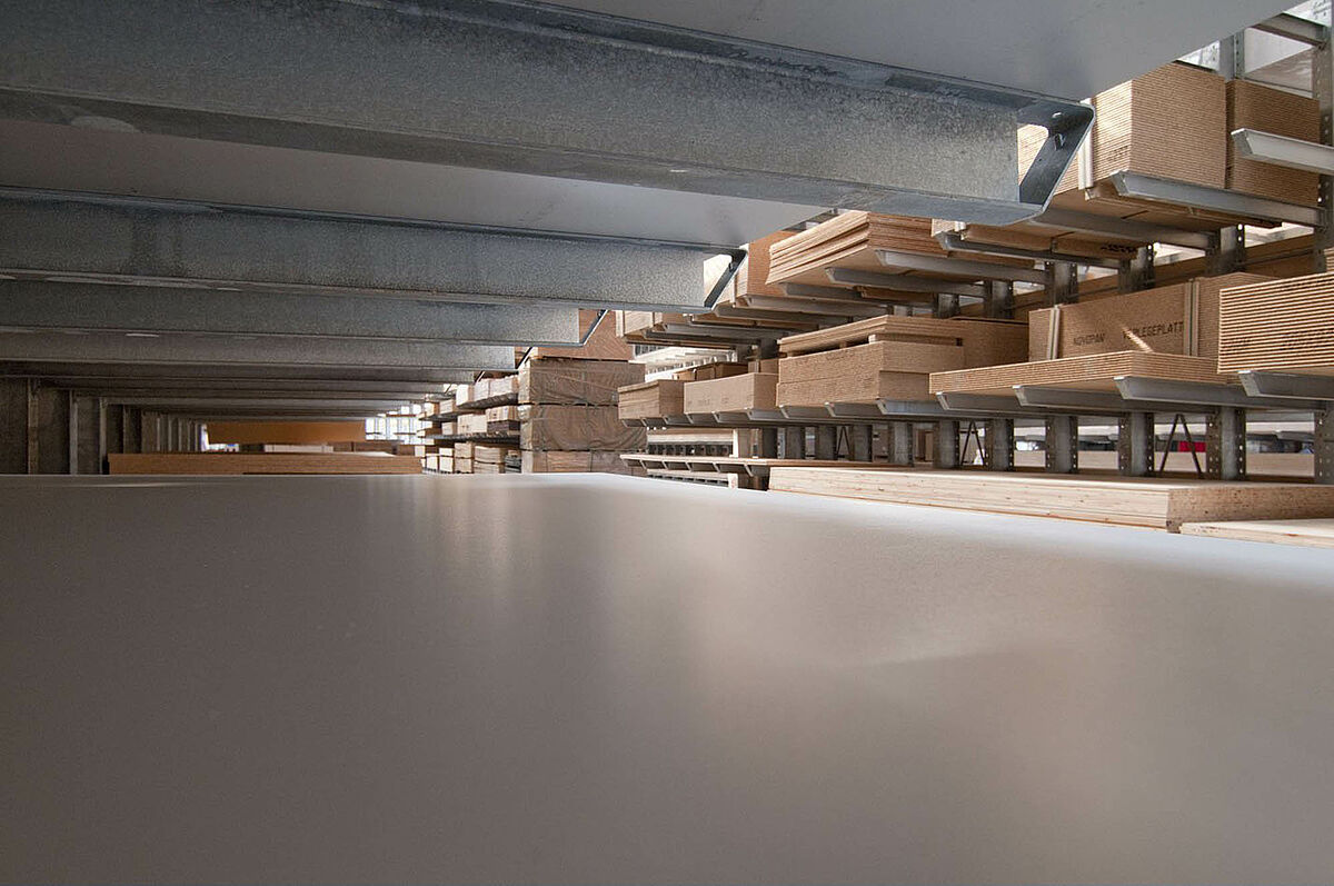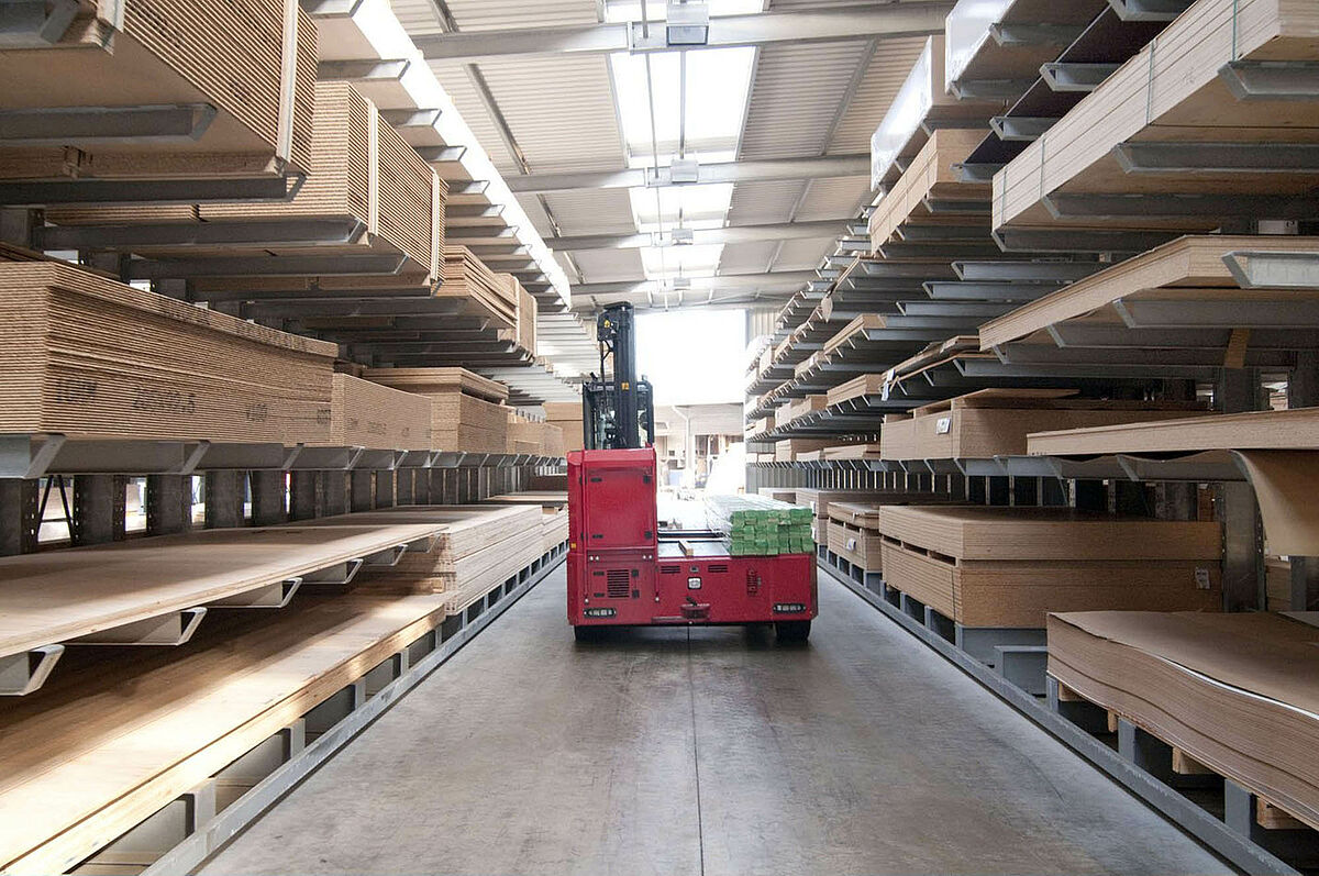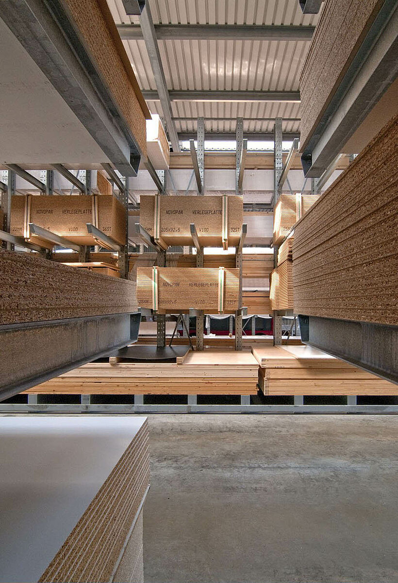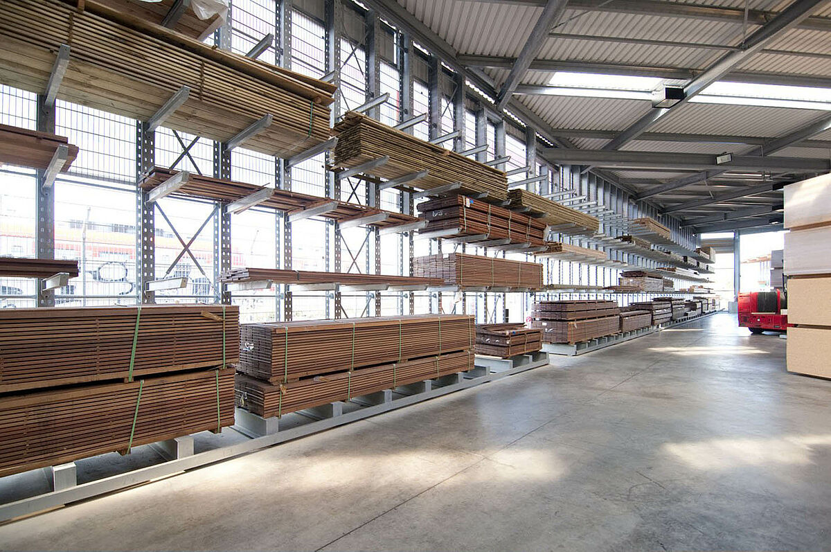 Después de un gran incendio la planta de almacenamiento de la empresa Schyns, una de las líderes del sector del comercio de madera en el circuito de Rhein Sieg, tuvo que ser reconstruida en muy poco tiempo. Para ello la empresa Schyns utilizó sistemas de estanterías de la empresa OHRA. Los especialistas en estanterías cantiléver de Kerpen realizaron la nueva construcción de la planta de 3385 metros cuadrados como emprendimiento general. Desde la primera planificación hasta el montaje todas las fases de la construcción fueron realizadas por una única empresa, pudiendo así concretizarse el proyecto en tan sólo siete meses.