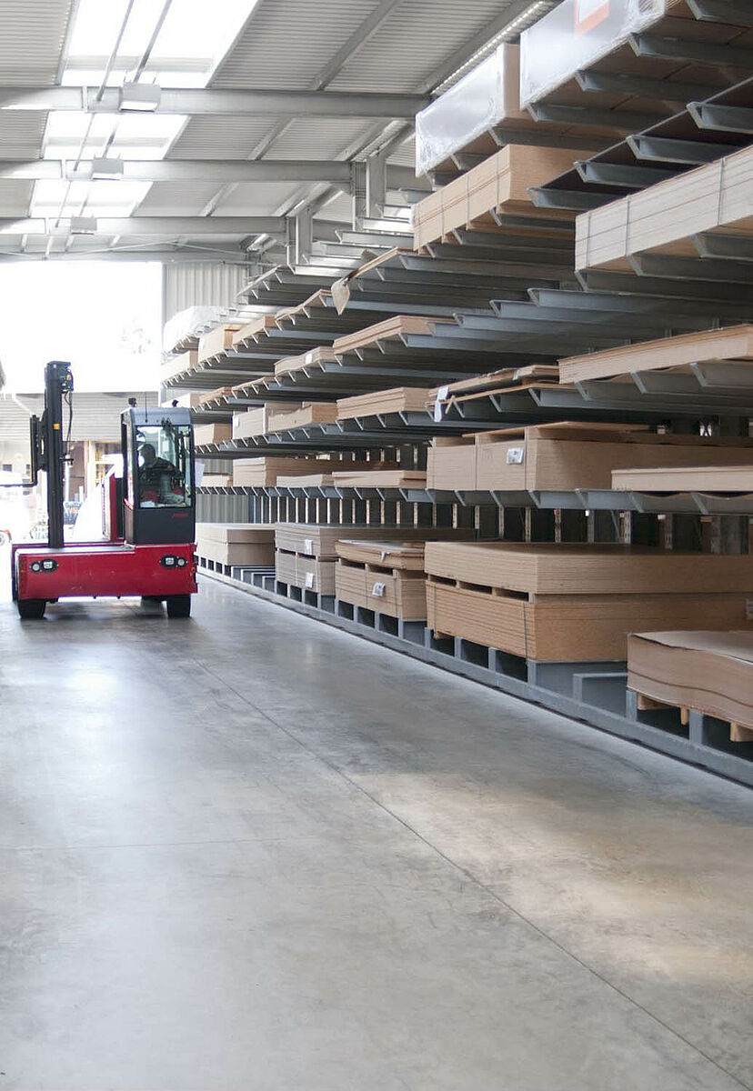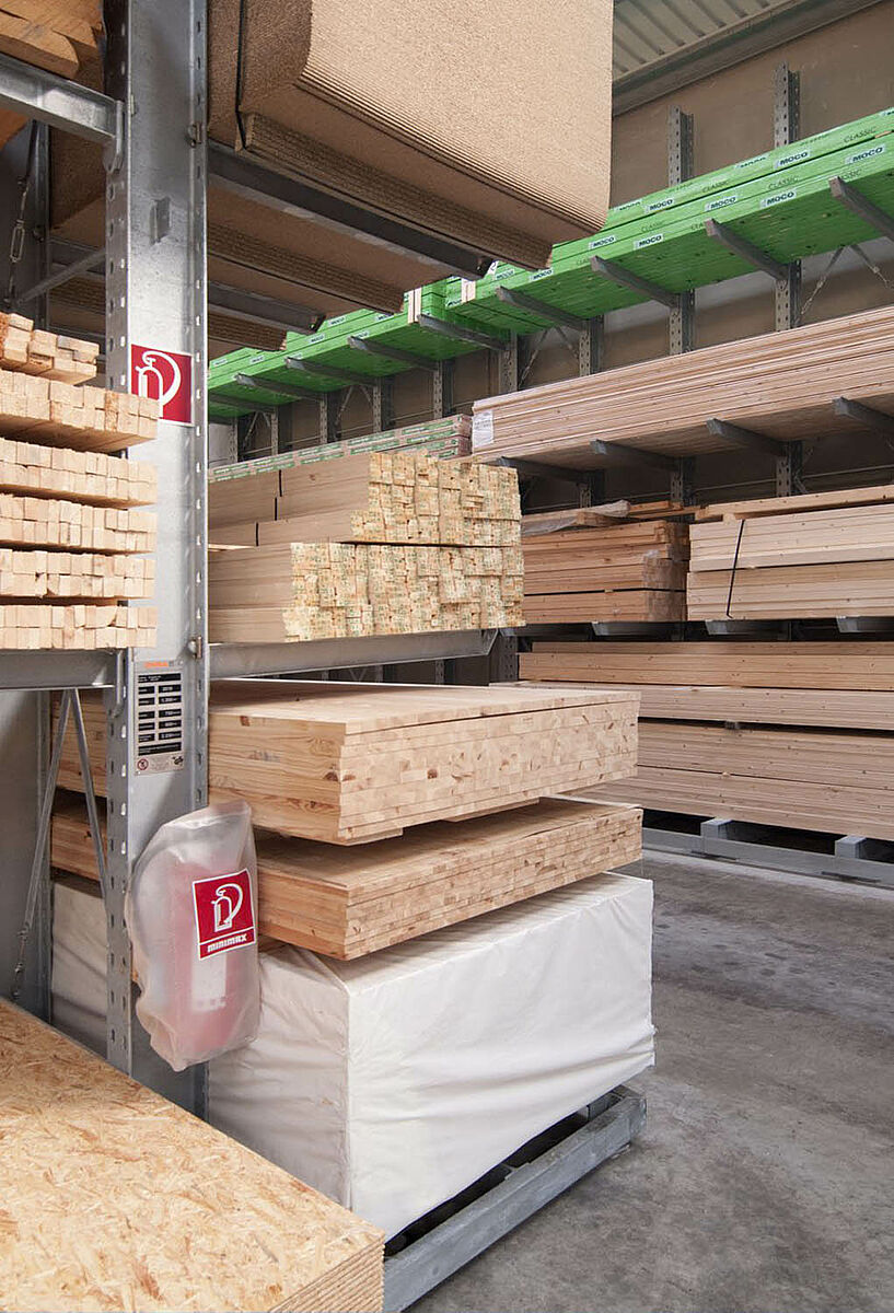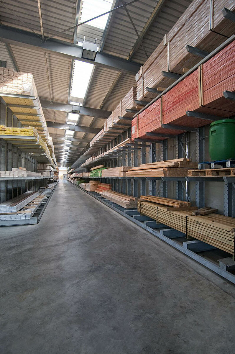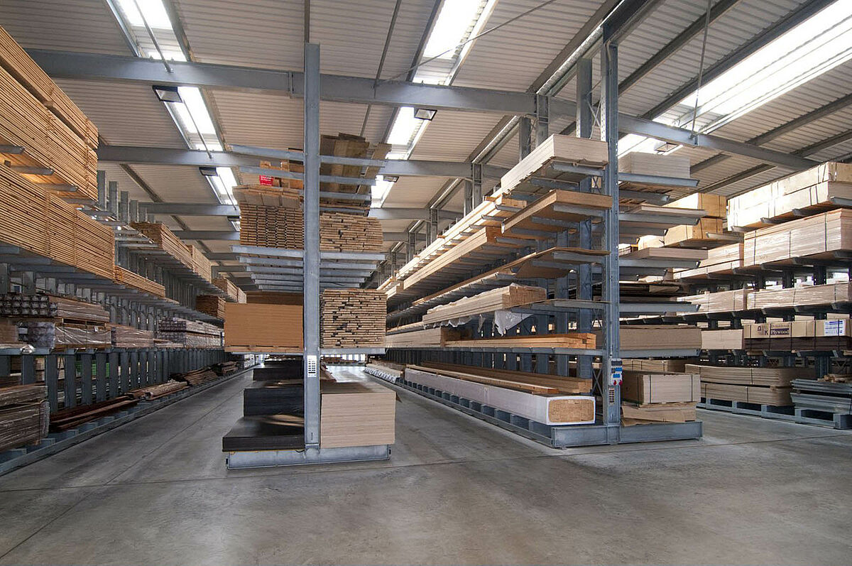La empresa Schyns con sede en Siegburg ofrece como empresa mayorista y minorista un amplio surtido de maderas para clientes privados y comerciales, desde madera para la construcción hasta para el jardín. Los artículos de madera se almacenan en un almacén con estanterías que viene siendo ampliado constantemente desde hace más de 20 años. Así con el paso de los años las filas de estanterías individuales se transformaron en una planta completa, la que a su vez se duplicó más tarde. De esa forma todo el almacén pudo crecer junto con la empresa.