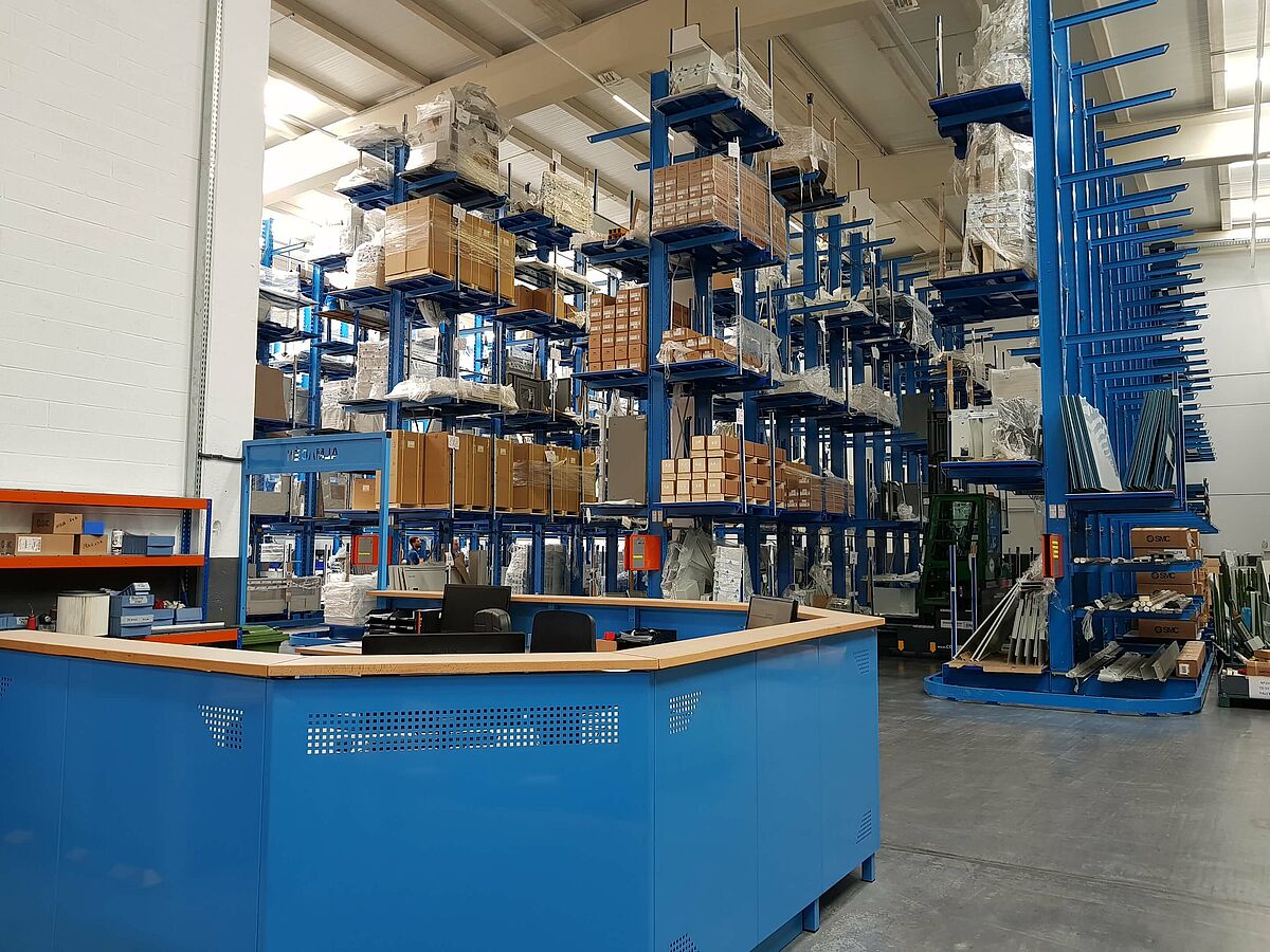 Para el almacenamiento de componentes para máquinas giratorias, la empresa española Seuner Fabricados ha instalado un nuevo sistema de estanterías de OHRA. La misión de este sistema era conseguir un almacenamiento de gran capacidad para componentes de diferentes dimensiones, que se puedan guardar sobre elementos de almacenaje diseñados específicamente para ello. La solución consta de estanterías cantiléver con una altura de 8,58 metros, que ofrecen una superficie de almacenamiento sin fin para poder almacenar mercancía voluminosa.