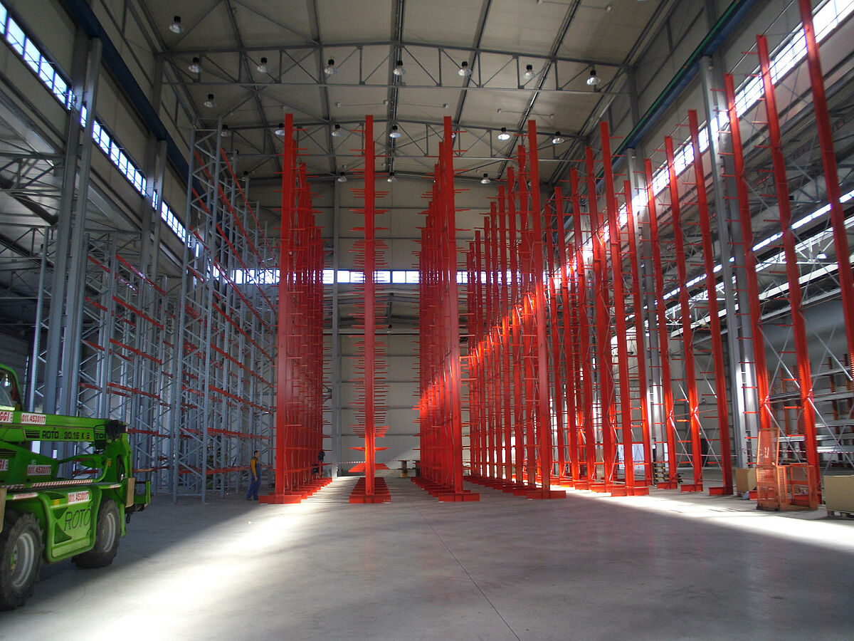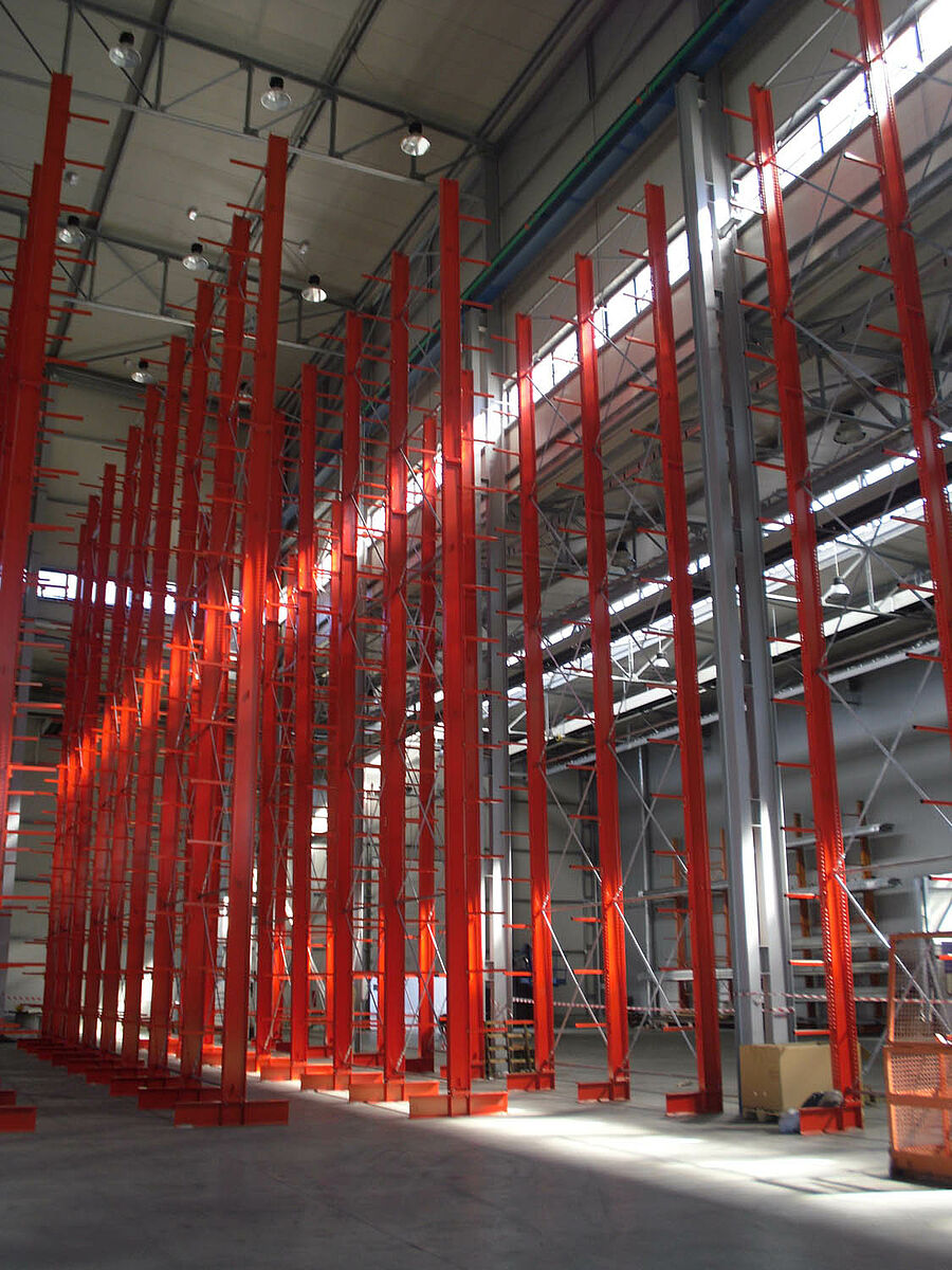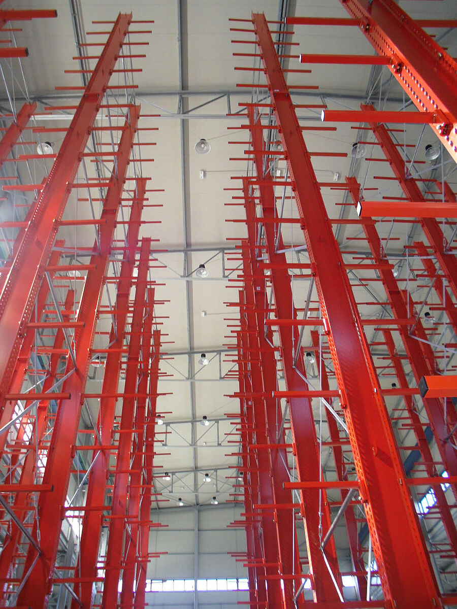 Sistema encargó el suministro de los sistemas necesarios de estanterías a OHRA Regalanlagen GmbH, la empresa con sede en Kerpen, Alemania, es líder del mercado europeo y especialista en estanterías cantiléver. Una vez que Sistema optimizó los procesos logísticos y que escogió un sistema de grúa completamente automático para la entrada y salida, los expertos de OHRA optimizaron el almacén cantiléver para obtener la mayor capacidad de carga posible.