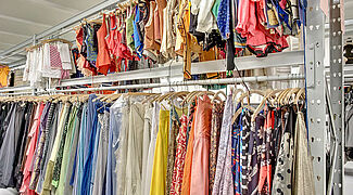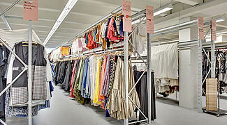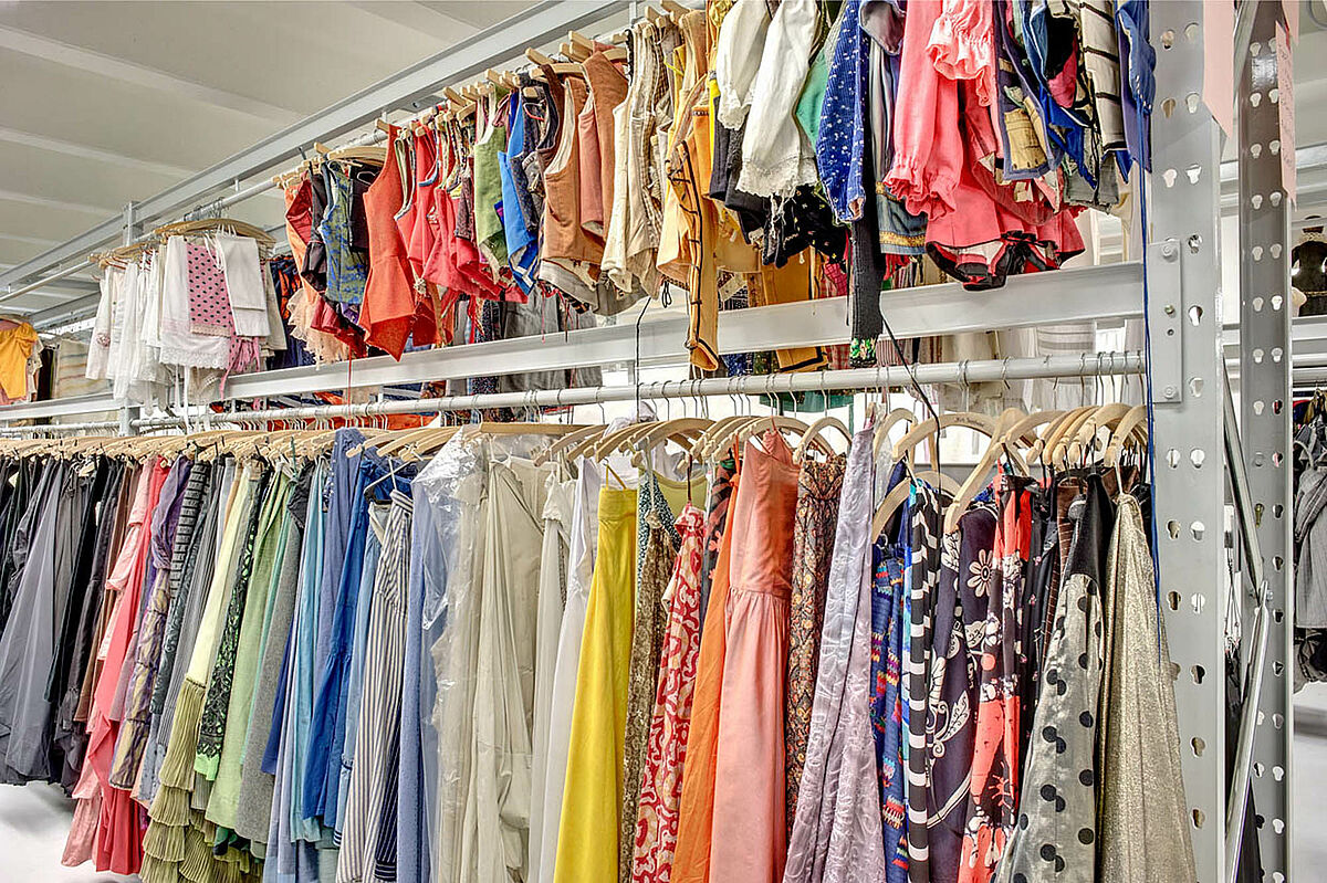 El vestíbulo fronterizo de tres pisos tiene todos los requisitos como muebles, lámparas, materiales de decoración y más. Un piso completo está reservado para los disfraces, zapatos y accesorios. Nada extraño, porque solamente los disfraces cuelgan compactos en armarios de ropa con alrededor de 2.400 lfdm. Adicionalmente armarios para zapatos, sombreros y otros materiales de decoración.