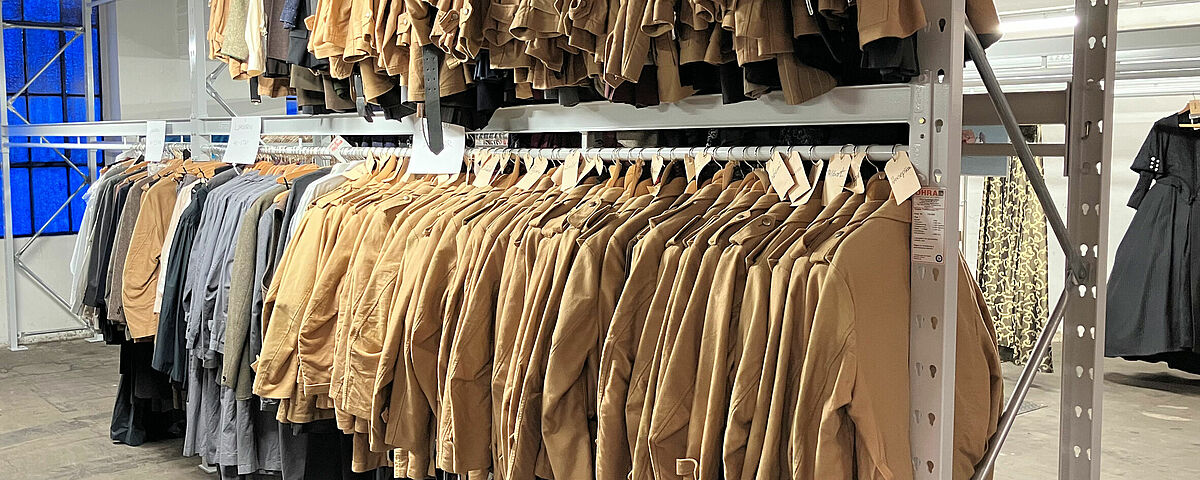 La colección de la Städtische Bühnen Frankfurt cuenta con un vestuario de 40.000 prendas. La Städtische Bühnen Frankfurt ha ampliado ahora su inventario con una construcción especial basada en estanterías de palés para el almacenamiento en una sola zona de todo su vestuario. En los soportes de las estanterías se montan raíles para guardar el vestuario colgado en perchas. Gracias a las estanterías, en el vestuario se puede almacenar ahora los trajes de forma más eficaz en una zona de almacenamiento ampliada.