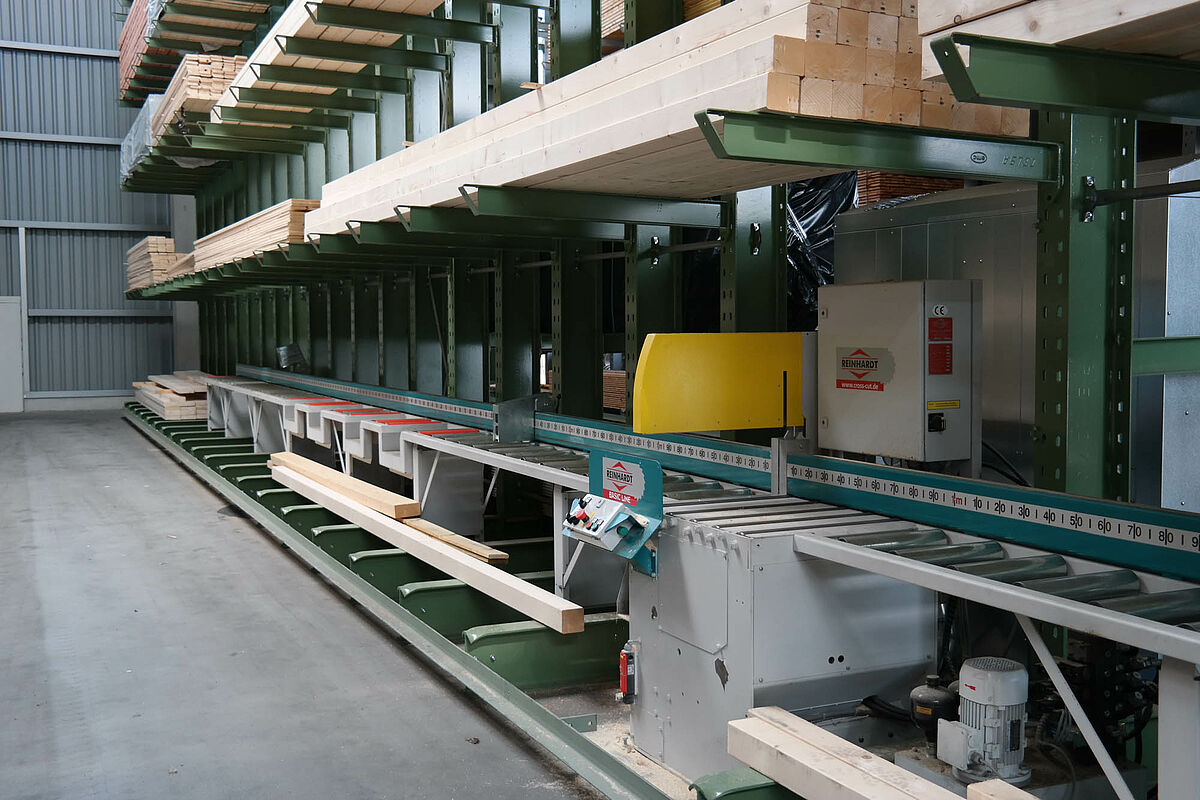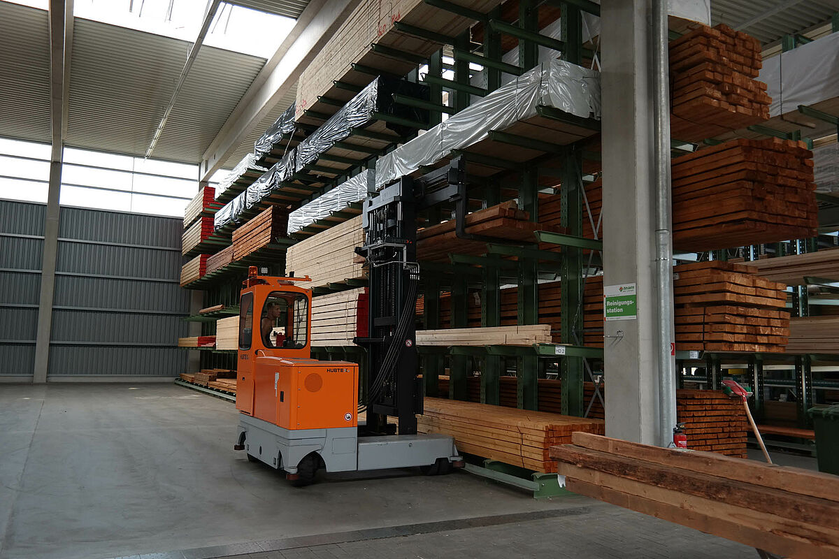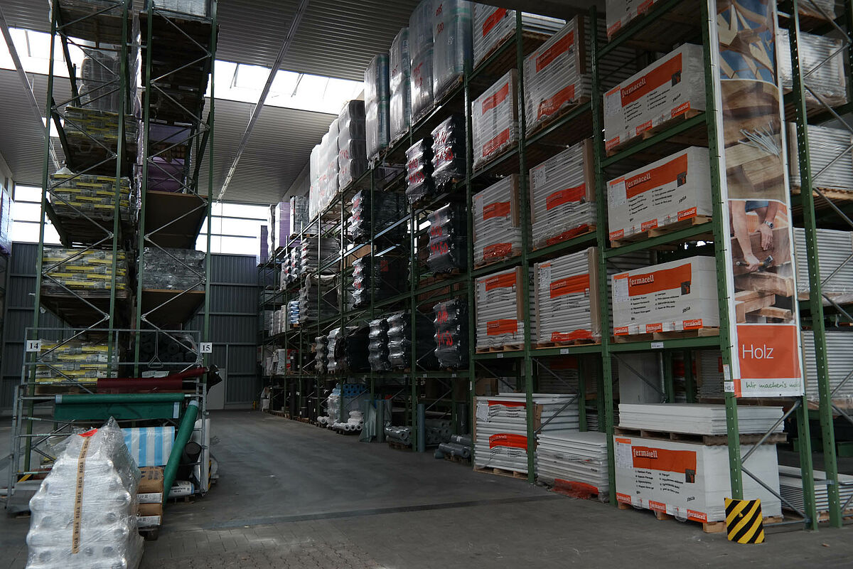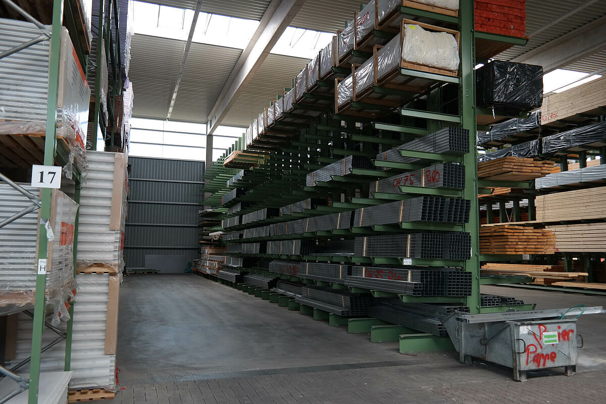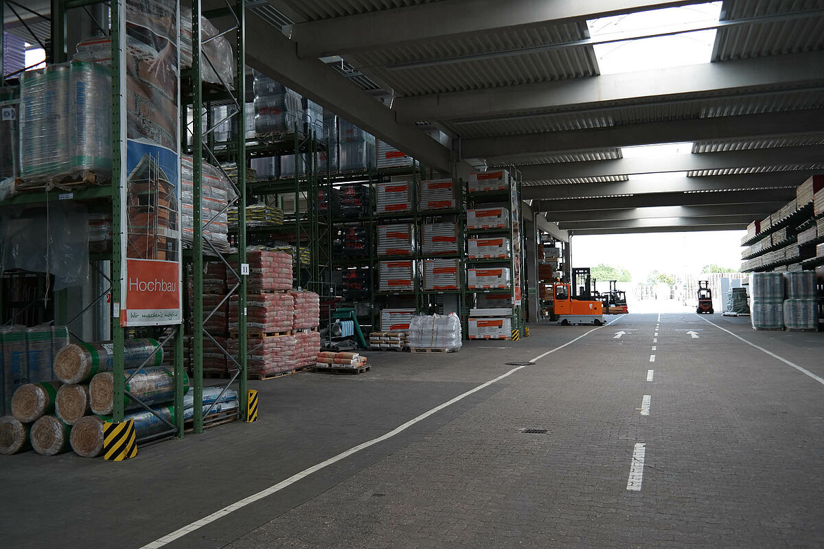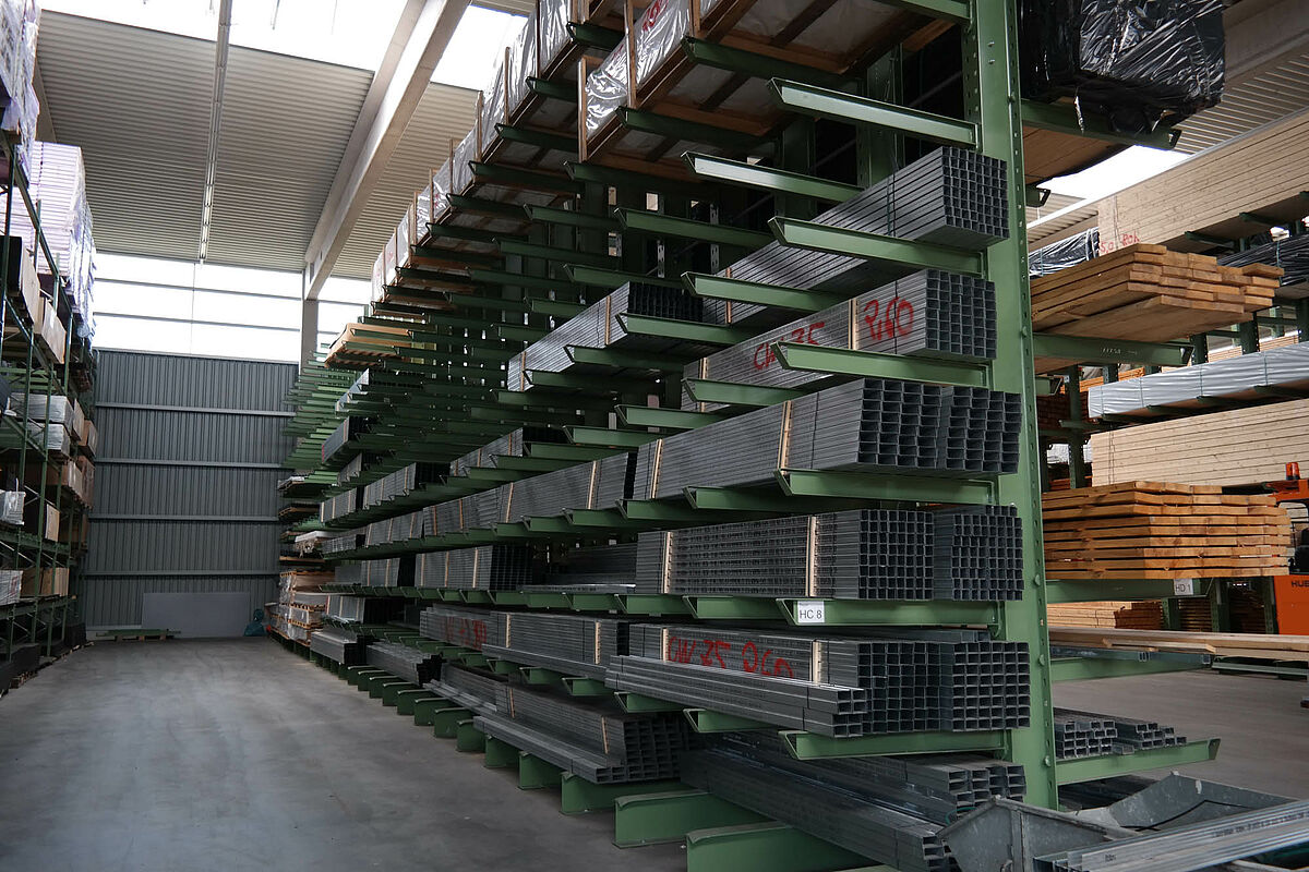 Hasta ahora el centro de construcción almacenaba los materiales en un almacén en bloque techado sólo parcialmente. Aparte de eso, las maderas de hasta 13 metros de largo se almacenaban en una estantería en el exterior. Pero las capacidades de almacenamiento bajo techo eran sólo escasas y la madera quedaba en parte expuesta a las condiciones meteorológicas. Al transportar las mercancías en el almacén de bloque los productos siempre resultaban dañados.