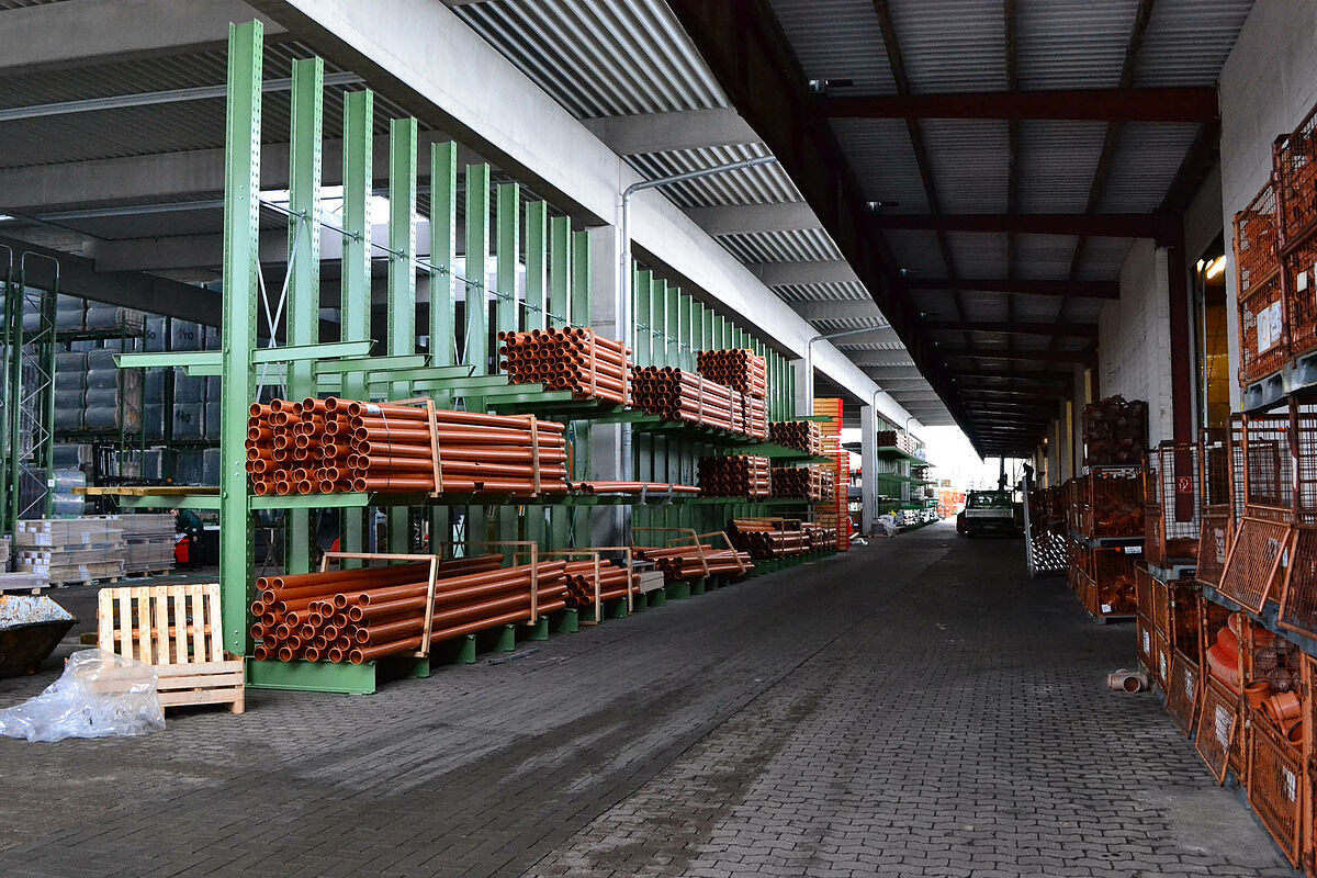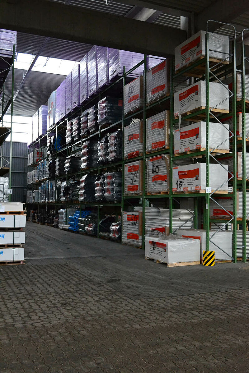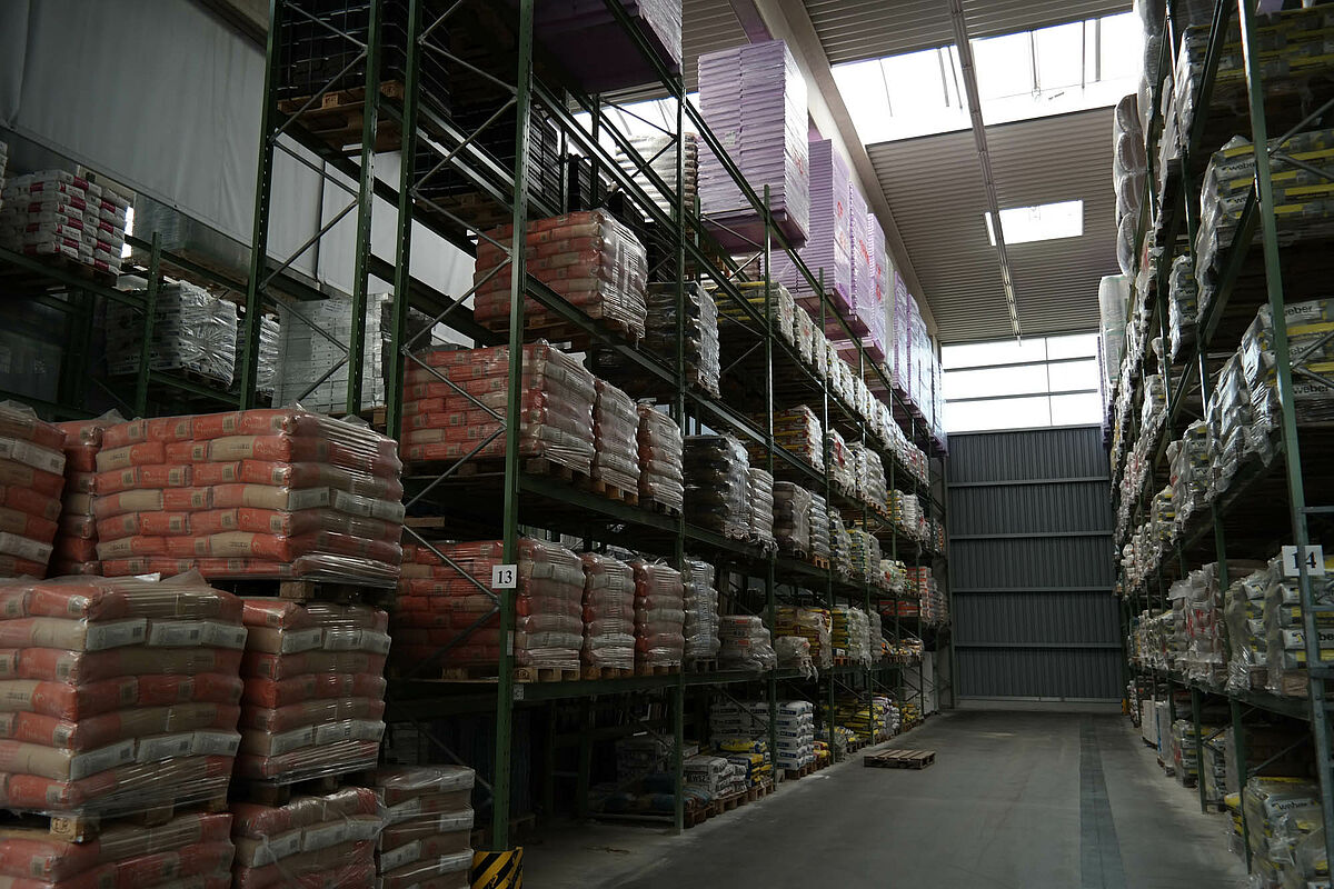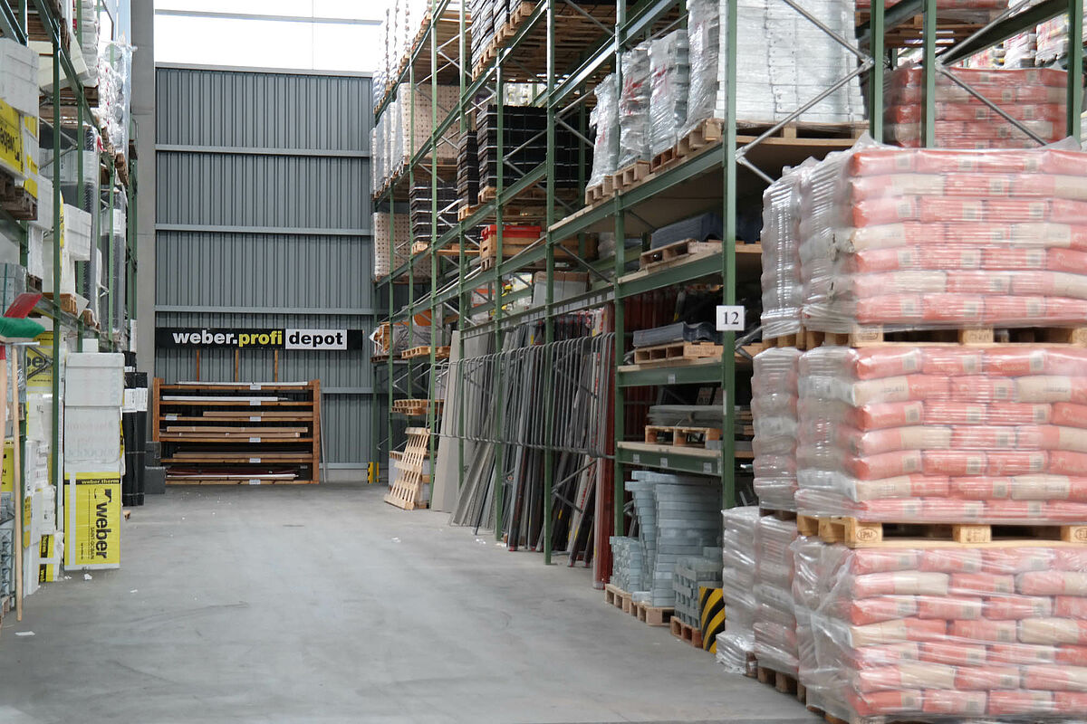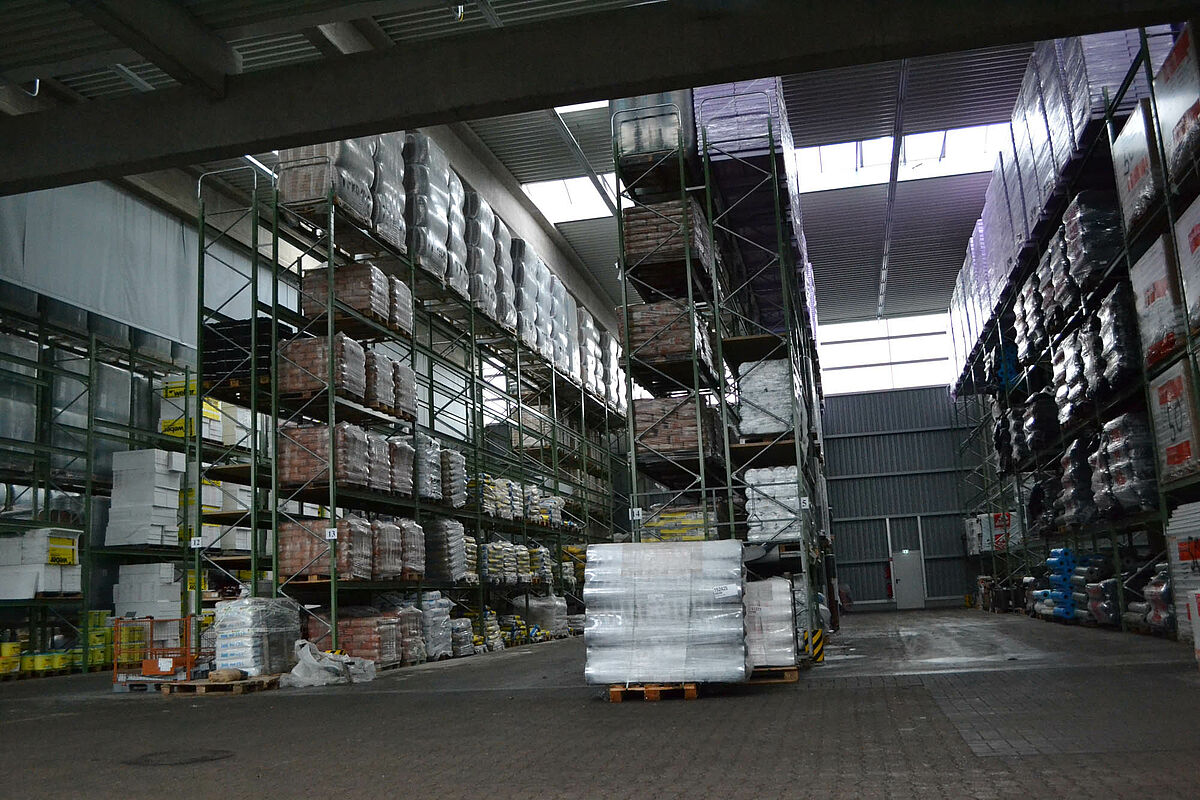 Hasta ahora el centro de construcción almacenaba los materiales en un almacén en bloque techado sólo parcialmente. Aparte de eso, las maderas de hasta 13 metros de largo se almacenaban en una estantería en el exterior. Pero las capacidades de almacenamiento bajo techo eran sólo escasas y la madera quedaba en parte expuesta a las condiciones meteorológicas. Al transportar las mercancías en el almacén de bloque los productos siempre resultaban dañados.