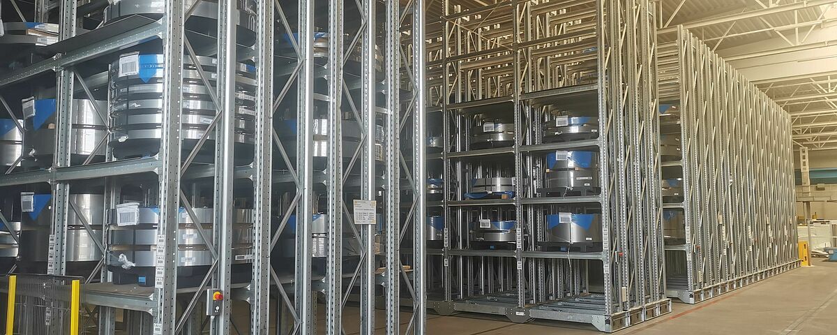 Thyssenkrupp Materials Hungary es una de las principales empresas comerciales de acero, metales ligeros, metales no ferrosos y materiales plásticos de Hungría. Para tener acceso directo a un gran número de bobinas de chapa diferentes con una gran capacidad de almacenamiento, la empresa instaló en 2005 estanterías de palés montadas sobre bases móviles transversales. Pero tras 17 años en servicio, el suministro de piezas de repuesto resulta cada vez más difícil. Numerosos componentes del sistema de control y conmutación de las estanterías móviles estaban descatalogados o ya no estaban disponibles. Sin embargo, como la estructura de acero seguía cumpliendo todos los requisitos, Thyssenkrupp Materials Hungary decidió modernizar la planta. Dado que OHRA ya había planificado e instalado un sistema de estanterías cantiléver móviles en Thyssenkrupp Materials Hungary, el especialista en tecnología de almacenamiento para cargas pesadas también recibió el encargo de modernizar el sistema de estanterías móviles para bobinas, aunque en aquel momento este había sido instalado por un proveedor externo.