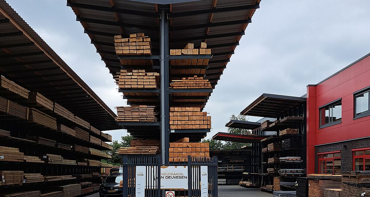 Fundada hace 25 años, la empresa es uno de los principales distribuidores de productos de madera de la región de Overijssel. Como la ubicación anterior había llegado a su límite, la capacidad de almacenamiento ya no podía ampliarse y el acceso era difícil debido a la ubicación en una zona residencial, van Deuveren decidió trasladarse a la nueva sede de la empresa en Dedemsvaart.
