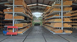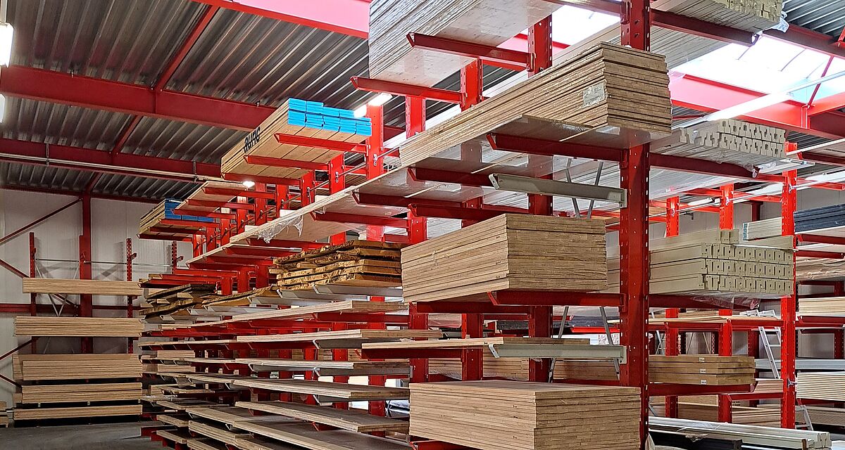 Debido a la experiencia positiva que van Deuveren ya conocía de las estanterías de OHRA, la nueva sede de la empresa también se equipó con estanterías del líder del mercado europeo de estanterías cantiléver. OHRA fabrica los pilares de las estanterías y los brazos de las estanterías cantiléver con perfiles de acero de alma maciza IPE laminados en caliente, de modo que las estanterías cantiléver permanecen estables incluso cuando se utilizan al máximo y garantizan un alto nivel de seguridad para el personal y los clientes. OHRA siempre fabrica las estanterías a medida según los deseos del cliente: en van Deuveren, esto se aplica no solo a las dimensiones y capacidades de carga, sino también al color.