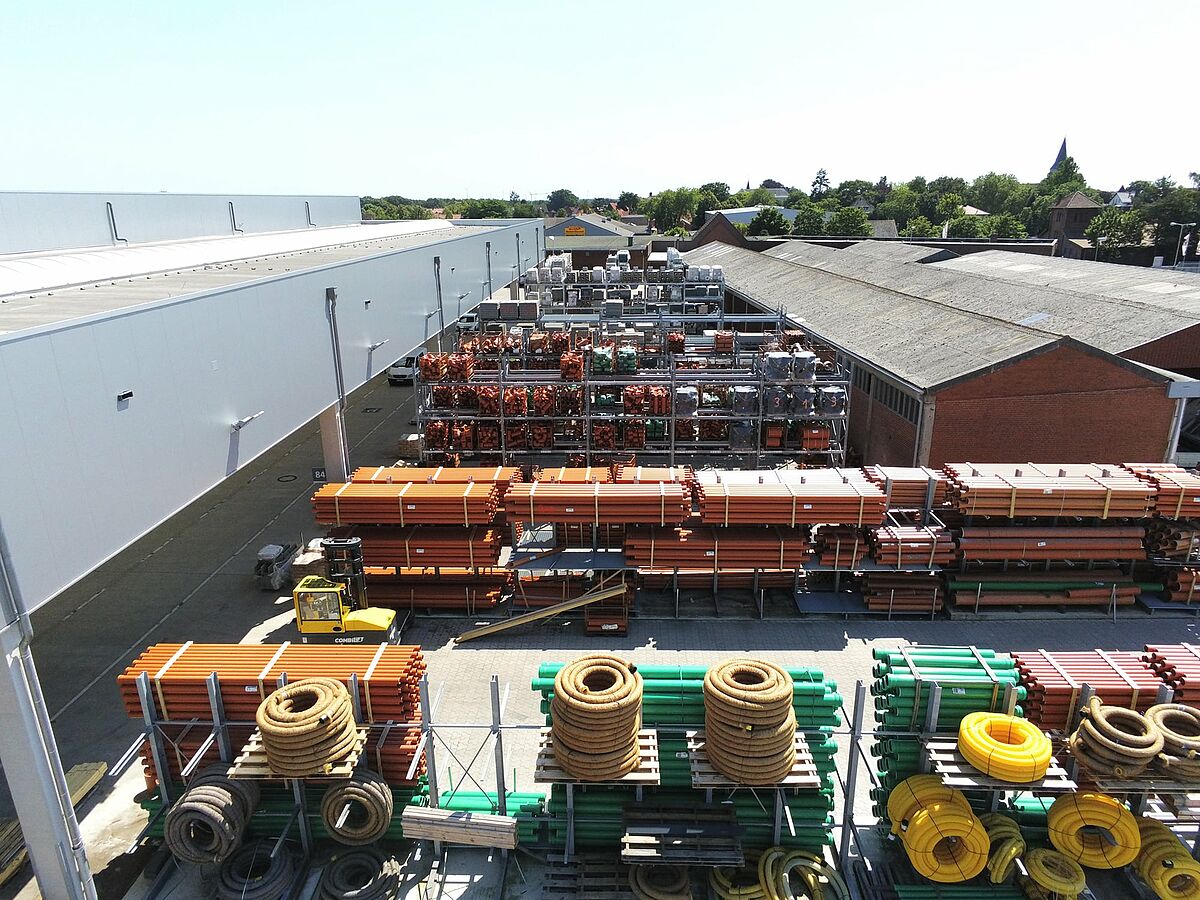 Vehmeyer, uno de los mayores comerciantes especializados en materiales de construcción de la región de Emsland, Alemania, ha ampliado considerablemente su capacidad de almacenamiento con un nuevo almacén de 5.800 metros cuadrados. En un plazo muy ajustado, OHRA entregó e instaló más de 25 estanterías cantiléver y de paletización, algunas de ellas de más de 42 metros de longitud y más de 7 metros de altura. Lo que ha logrado que ahora una amplia variedad de materiales de construcción puedan almacenarse de una manera mucho más eficaz. Los clientes reciben sus mercancías de forma más rápida, se han optimizado los procesos logísticos y se ha aumentado la disponibilidad general de los almacenes.