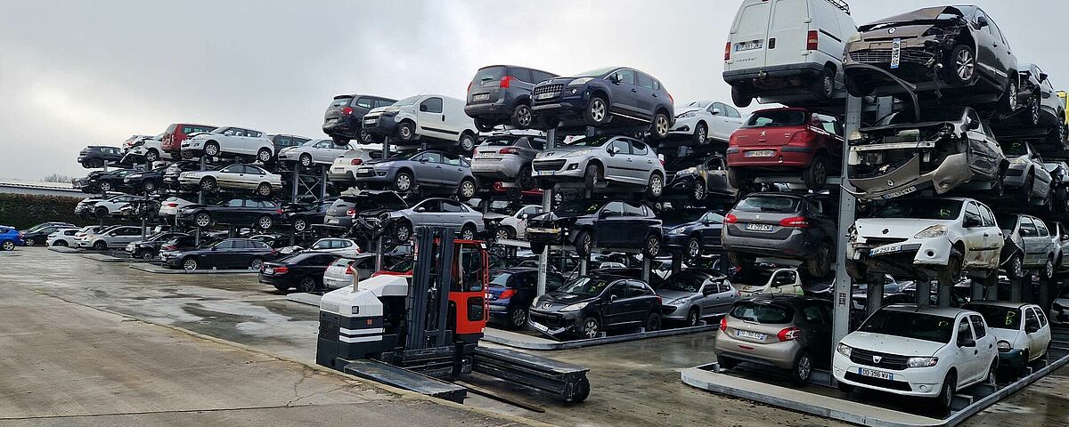 La empresa francesa de reciclaje de automóviles Auto Pièces ya no almacena sus vehículos fuera de uso en el suelo, sino en estanterías cantiléver de OHRA. De este modo, es posible almacenar cuatro vehículos uno encima de otro y acceder directamente a los vehículos de la parte inferior. Mientras que Auto Pièces disponía hasta ahora de 350 plazas para vehículos usados, ahora pueden almacenarse 750 vehículos en la misma superficie, lo que aumenta la capacidad total del emplazamiento a 1700 plazas.