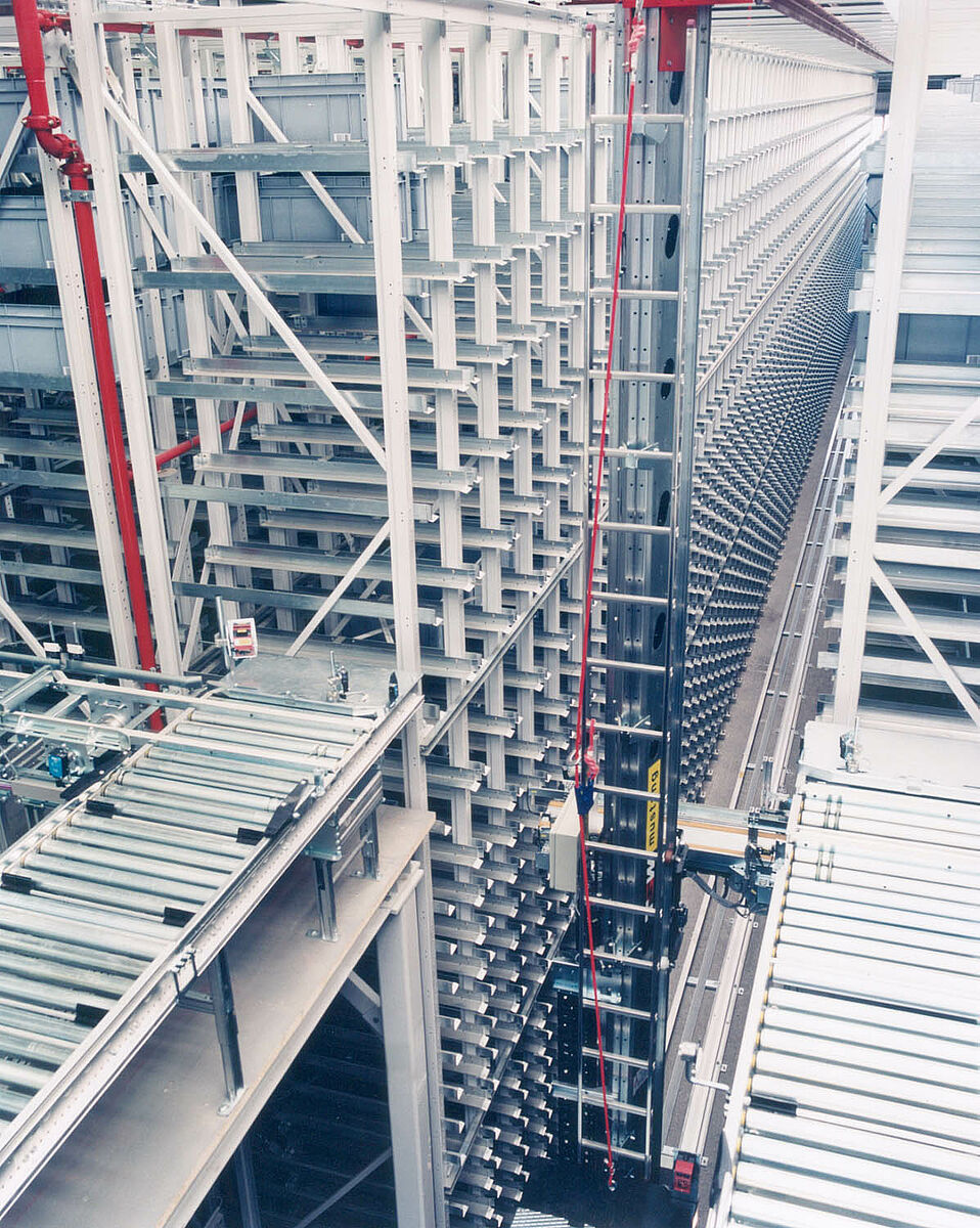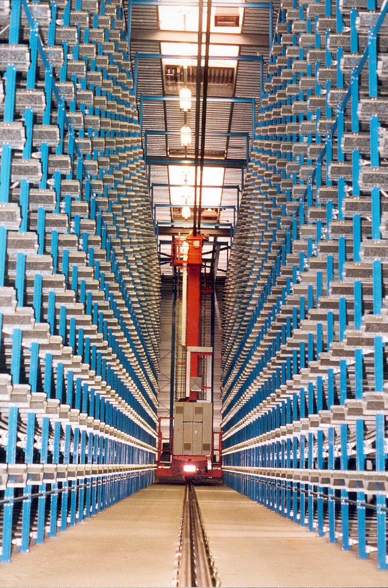 Optimización de almacenaje por la automatización completa o parcial de procesos de almacenaje y dispensación. Según el principio “Mercancía a la persona” aumenta la capacidad de rendimiento con altas capacidades de expedición. Según los requerimientos se pueden retirar uno o varios paquetes con diferentes formatos de chapas, o unidades con material redondo, y se pueden desplazar a la estación de transferencia. La manipulación se realiza con el puente grúa de la nave o con los equipos de operación de estanterías (RBG).