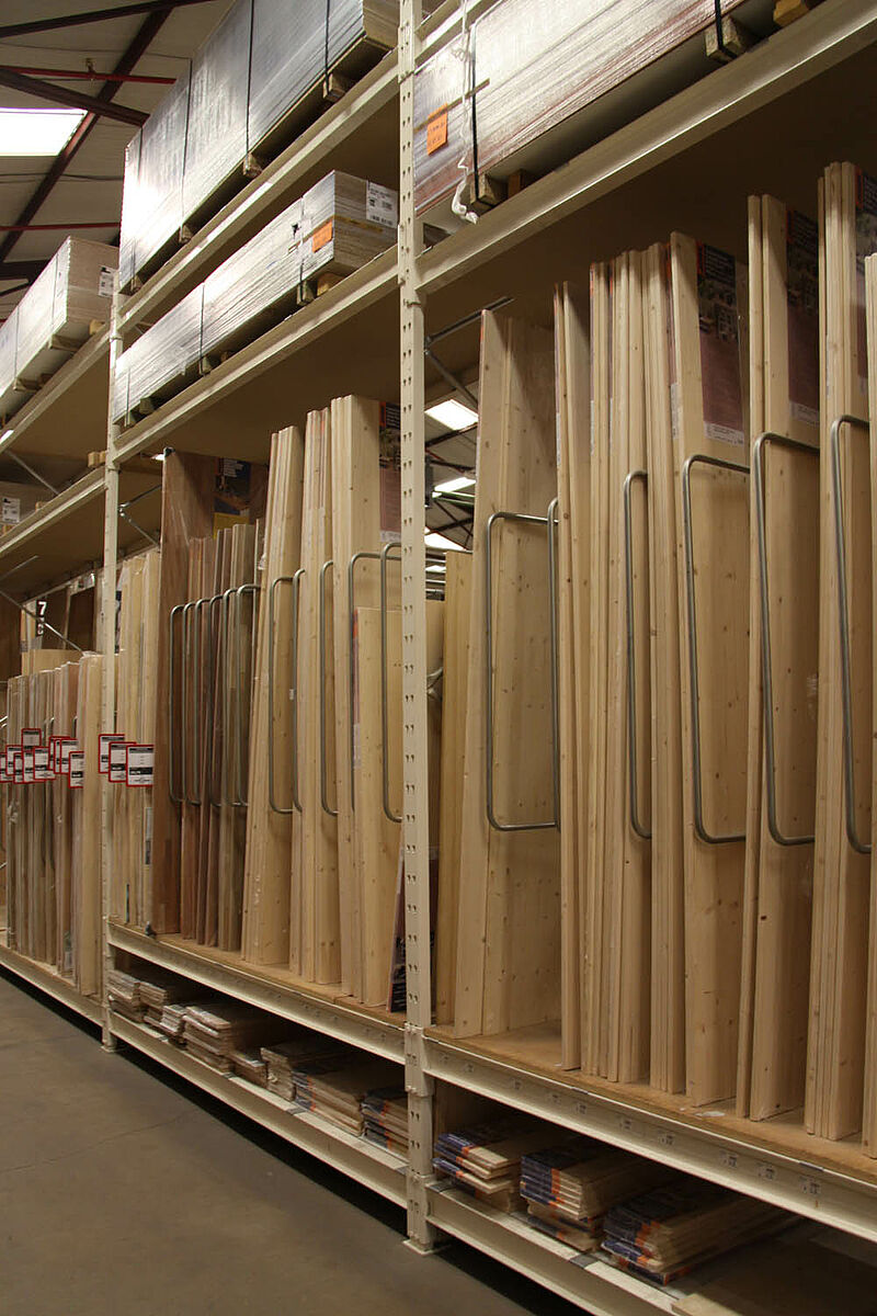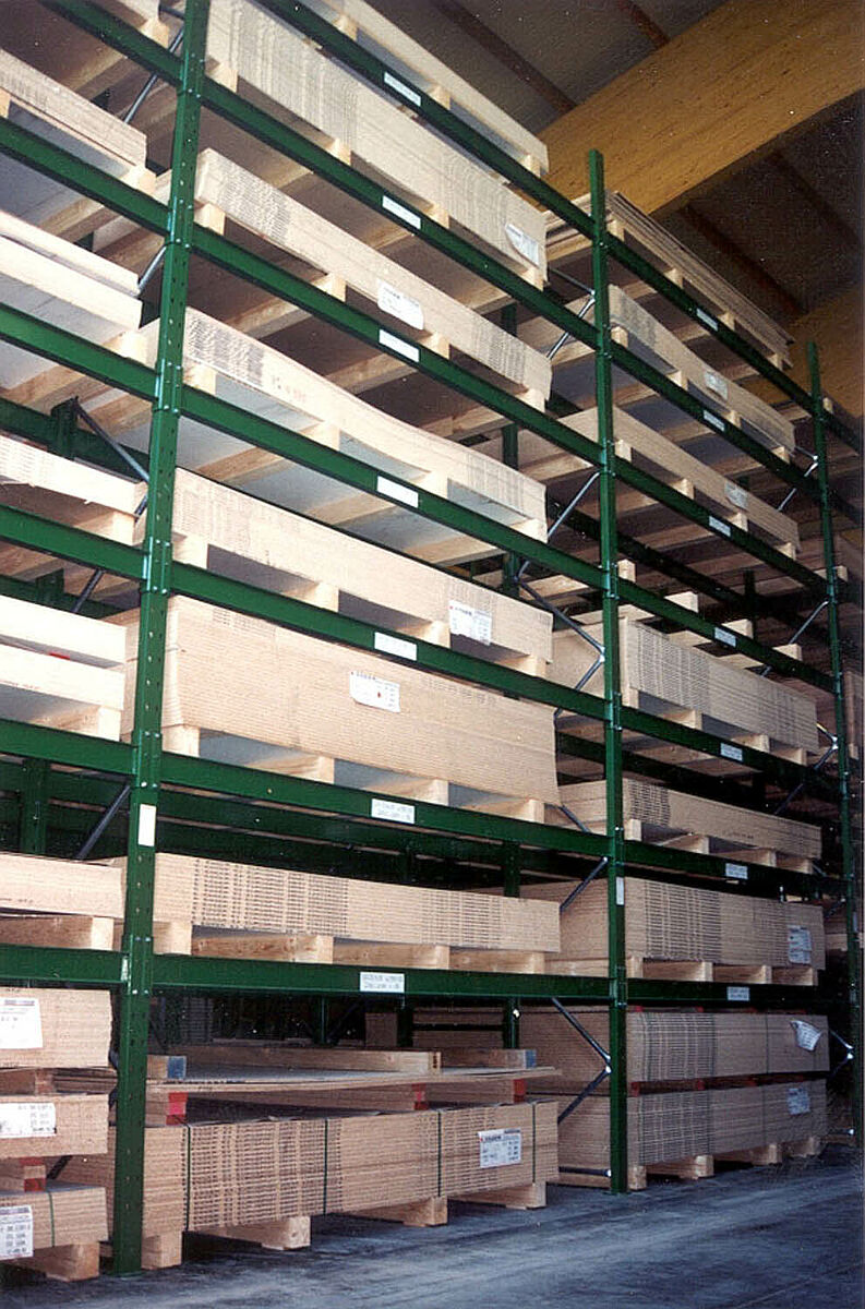 Las estanterías Cantilever son el sistema de almacenamiento ideal en el comercio de maderas, especialmente para materiales de madera largos, pesados o voluminosos. Gracias a su forma constructiva robusta pero a la vez delgada de perfiles de acero laminados en caliente, las estanterías Cantilever de OHRA brindan una elevada capacidad de carga con una superficie de apoyo reducida. Otros productos tales como estanterías para paletas, estanterías verticales y para tableros completan nuestra oferta para este sector.