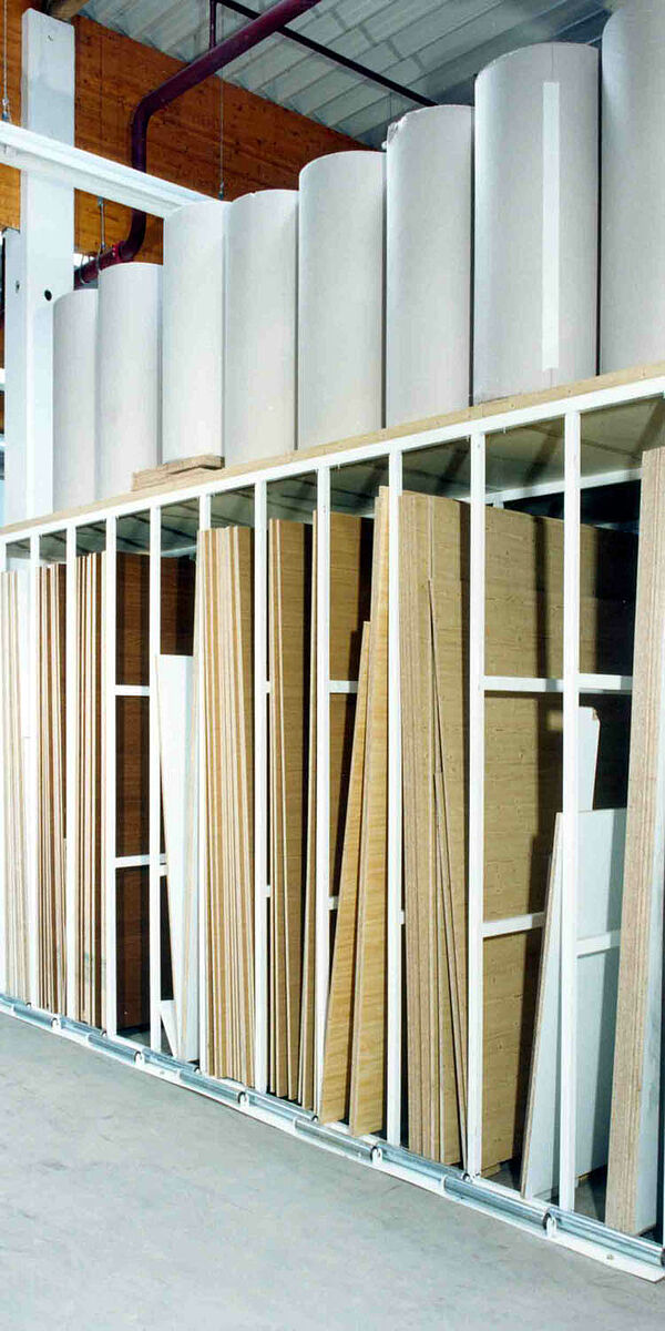 Las estanterías verticales de OHRA se emplean en cualquier lugar donde diversidad de productos largos tienen que ser almacenados verticalmente, en particular barras o tubos. Pueden ser estanterías instaladas cerca de la estación de trabajo, así como estanterías de presentación en una sala de ventas, donde se presentarán diferentes dimensiones, colores o diseños a los clientes. Para el almacenamiento vertical de aglomerado directamente en el área de recorte, no existe una mejor alternativa que la estantería robusta de tableros de OHRA. El sistema modular de tubos cuadrados es muy adecuado y muy duradero. Para el almacenaje y su fácil dispensación se instalan rodillos de alta calidad en la base de cada hueco de la estantería.