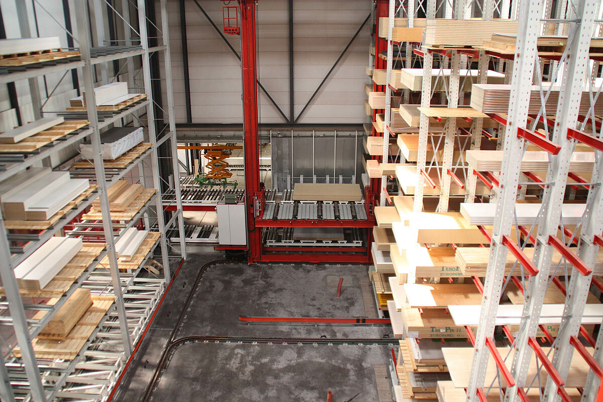 Optimización de almacenaje por la automatización completa o parcial de procesos de almacenaje y dispensación. Según el principio «Mercancía a la persona» aumenta la capacidad de rendimiento con altas potencias de expedición. Según el requerimiento se pueden retirar paquetes completos o un tablero y transportarlos a la estación de entrega.