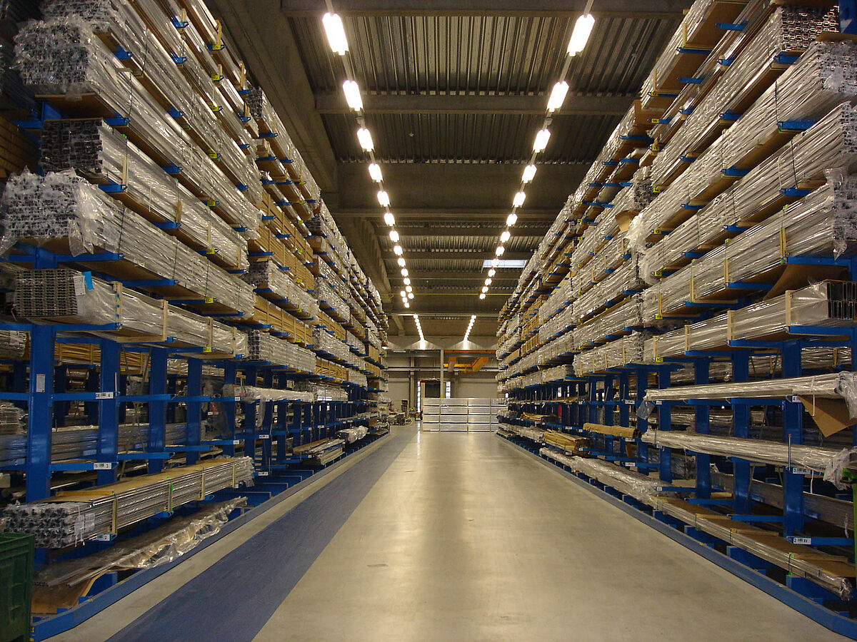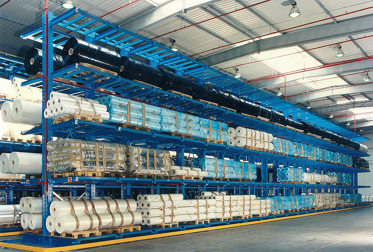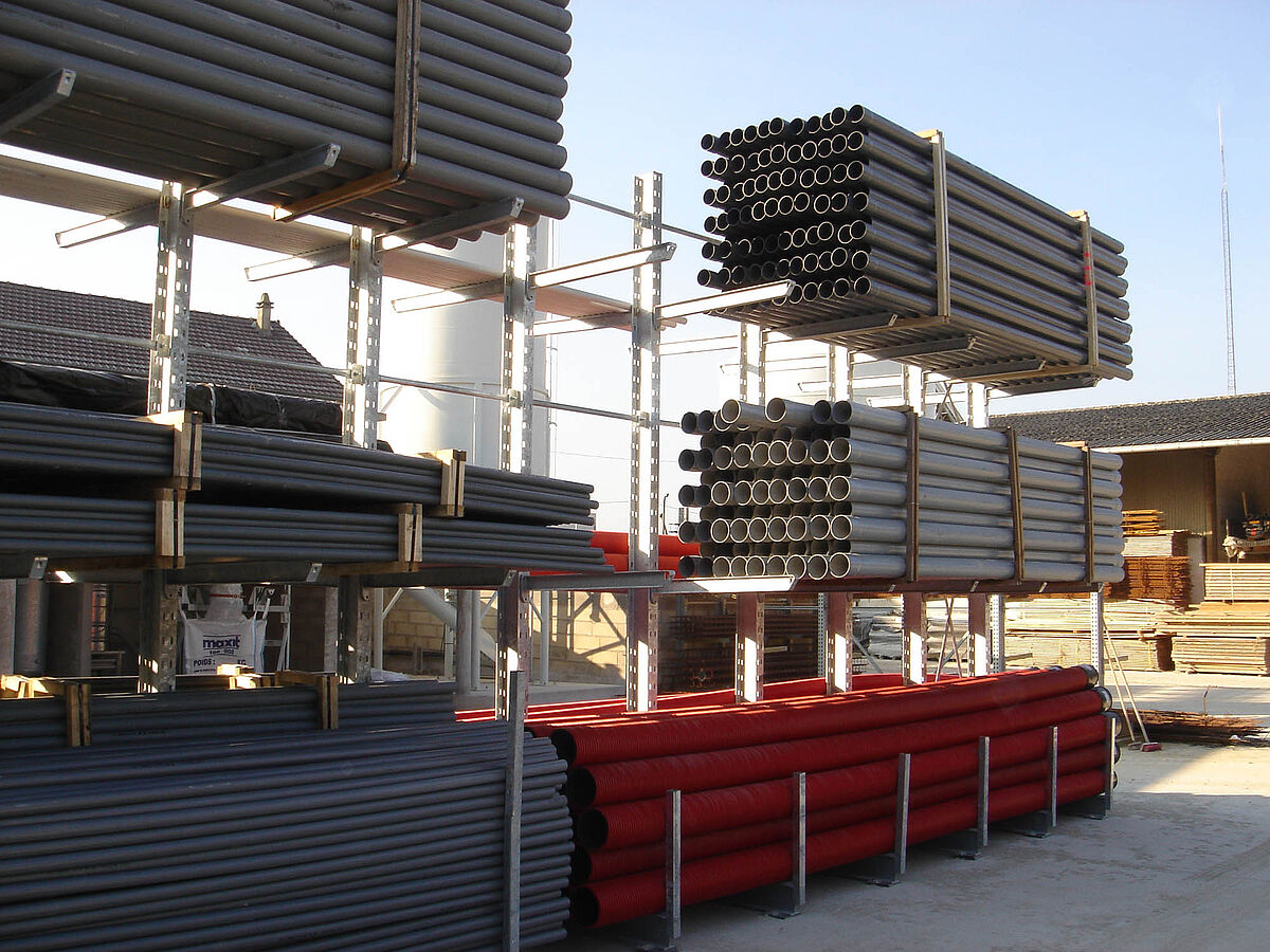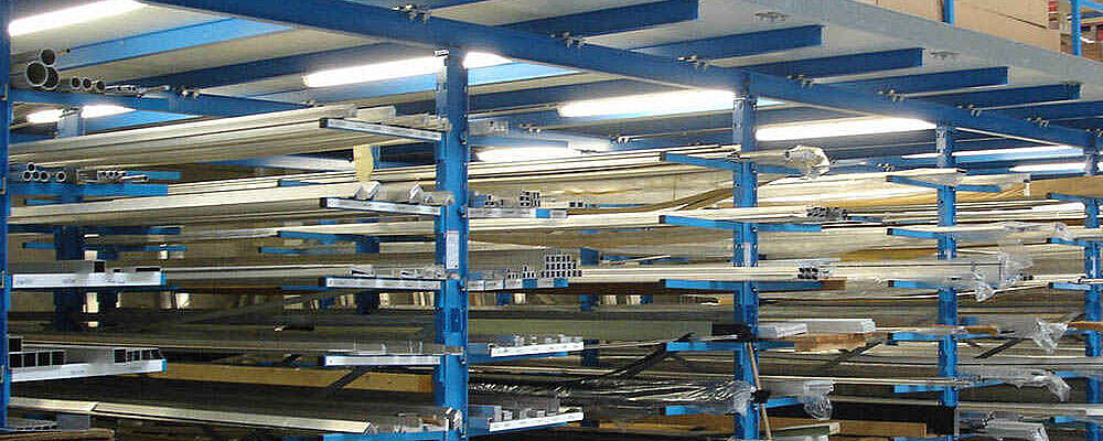 Para el almacenamiento de aluminio y plástico, las estanterías cantilever son la solución de almacenamiento ideal para los productos largos de cualquier forma, longitud o calidad. Perfiles de aluminio y plástico, tubos y placas de PVC, tubos de bajada, marcos de ventana, canalones y otros materiales largos se pueden almacenar y desalmacenar con esto sistema de estanterías que ocupa poco espacio.