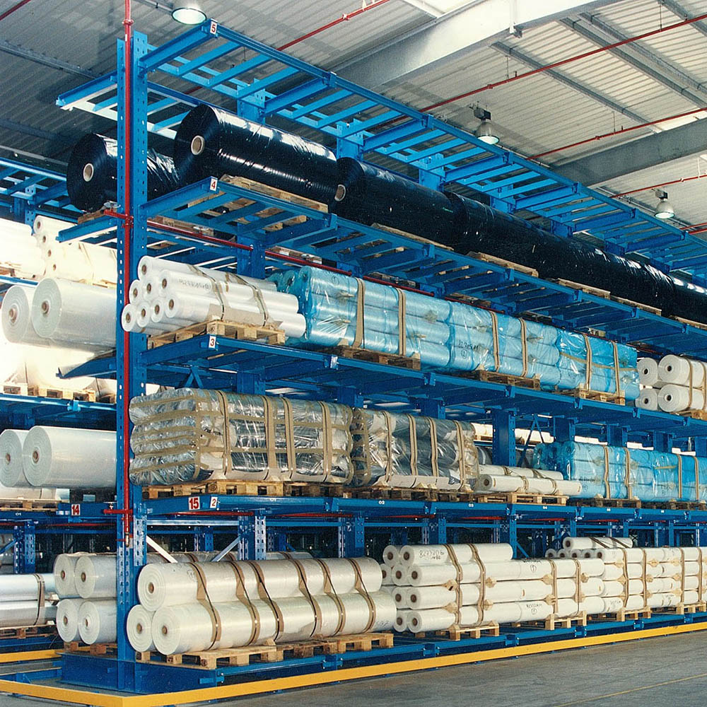 El sistema óptimo de almacenamiento para los talleres de producción, almacenes de materias primas y logísticos. Las estanterías cantilever versátiles, con brazos adaptables en altura que desvían los golpes hacia arriba y hacia los lados. Este sistema protege su mercancía de daños. Todas las estanterías cantilever son fabricadas, entregadas e instaladas según las especificaciones del cliente y según la mercancía de almacenaje. Perfiles de acero laminado en caliente, robusto, para los elementos portantes de las estanterías cantilever hacen posible un almacenamiento seguro de sus productos. La alta calidad de las estanterías para paletas y las estanterías cantilever garantizan una solución duradera y productiva para el almacenaje en empresas industriales y centros de procesamiento.