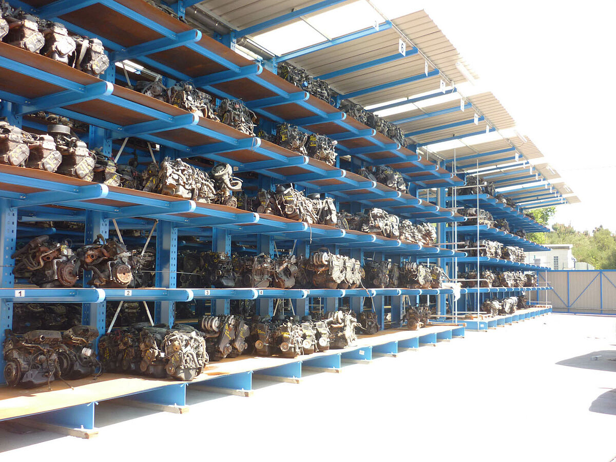 Especialmente para los recicladores de vehículos y servicios de remolque, OHRA ha desarrollado y optimizado la estantería cantilever para los vehículos y piezas de repuestos. Este sistema de almacenamiento tiene suficientes reservas de potencia para el almacenamiento seguro en altura, así como el acceso directo a la carga. Esto logra economizar enormemente el espacio y transformar los procesos de reciclaje en más económicos debido a un menor coste de manipulación. Los perfiles de acero laminados en caliente en todos los elementos portantes de la estantería cantilever permiten el almacenamiento seguro de varios coches uno encima del otro.  La alta calidad de los soportes de las  estanterías y los brazos cantilever garantizan una solución duradera y económica de almacenamiento en empresas de recicladores de automóviles y de servicios de remolque y grúa.