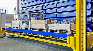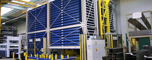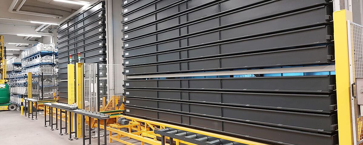 El TowerMat es ideal para el almacenamiento que ahorra espacio de mercancía larga, chapas o palets, especialmente donde se deben aprovechar eficientemente las alturas de las naves. El sistema de almacenamiento vertical es modular y se adapta de forma flexible tanto a la mercancía almacenada como a las condiciones estructurales. Según la versión, se pueden almacenar casetes o palets de sistema con un peso de hasta 8 toneladas. La provisión automática de la mercancía se realiza según el principio "mercancía a la persona".